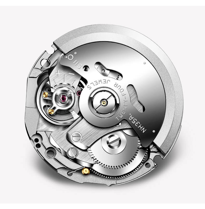Thông số kỹ thuật - Chốt gập ba - Dây đeo bằng thép không gỉ - Mặt kính khoáng - Chống nước - Giờ hiện hành thông thường - Đồng hồ kim: 3 kim (giờ,