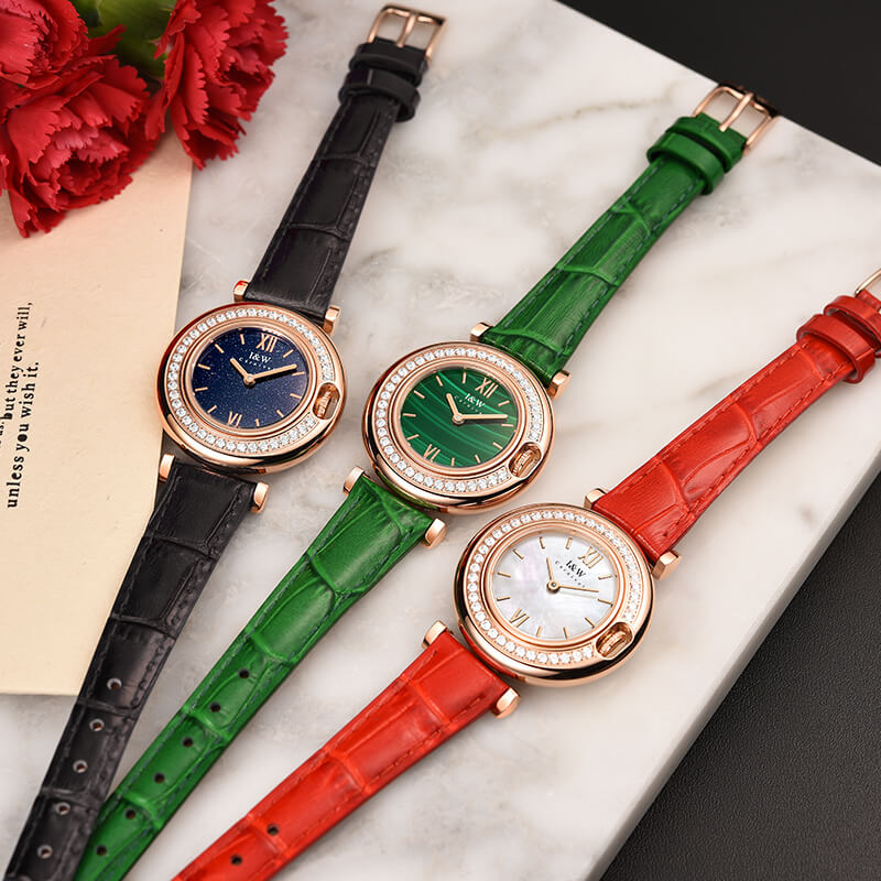 Thương hiệu : IW CARNIVAL Quốc gia đăng ký thương hiệu : Thụy Sỹ Mã sản phẩm : IW626G-2 Giới tính : Nữ Kiểu máy : Nhật Bản (Japan Movt) Loại sản phẩm : Đồng hồ máy cơ (Automatic) Đường kính mặt : 34 mm Chiều dày : 8.5 mm Chất liệu vỏ : Thép không gỉ 316L Chất liệu dây : Dây da cao cấp Chất liệu mặt kính : Sapphire Độ chịu nước : 3 ATM Nơi Sản Xuất : Trung Quốc Bảo hành : 24 tháng ------------------------------------- Món Quà - Phụ Kiện Không Thể Thiếu Của Quý Cô Sang Trọng Được thiết kế bởi những chuyên gia đồng hồ hàng đầu thế giới, mẫu đồng hồ nữ IW626G-2 mang đến cho người dùng sự sang trọng và thanh lịch. Với vỏ đồng hồ bằng thép không gỉ và mặt kính Sapphire chống trầy xước, sản phẩm này sẽ giữ được độ mới và bền bỉ trong nhiều năm sử dụng. Đồng hồ nữ IW626G-2 được trang trí với những chi tiết tỉ mỉ, từ những viên đá được