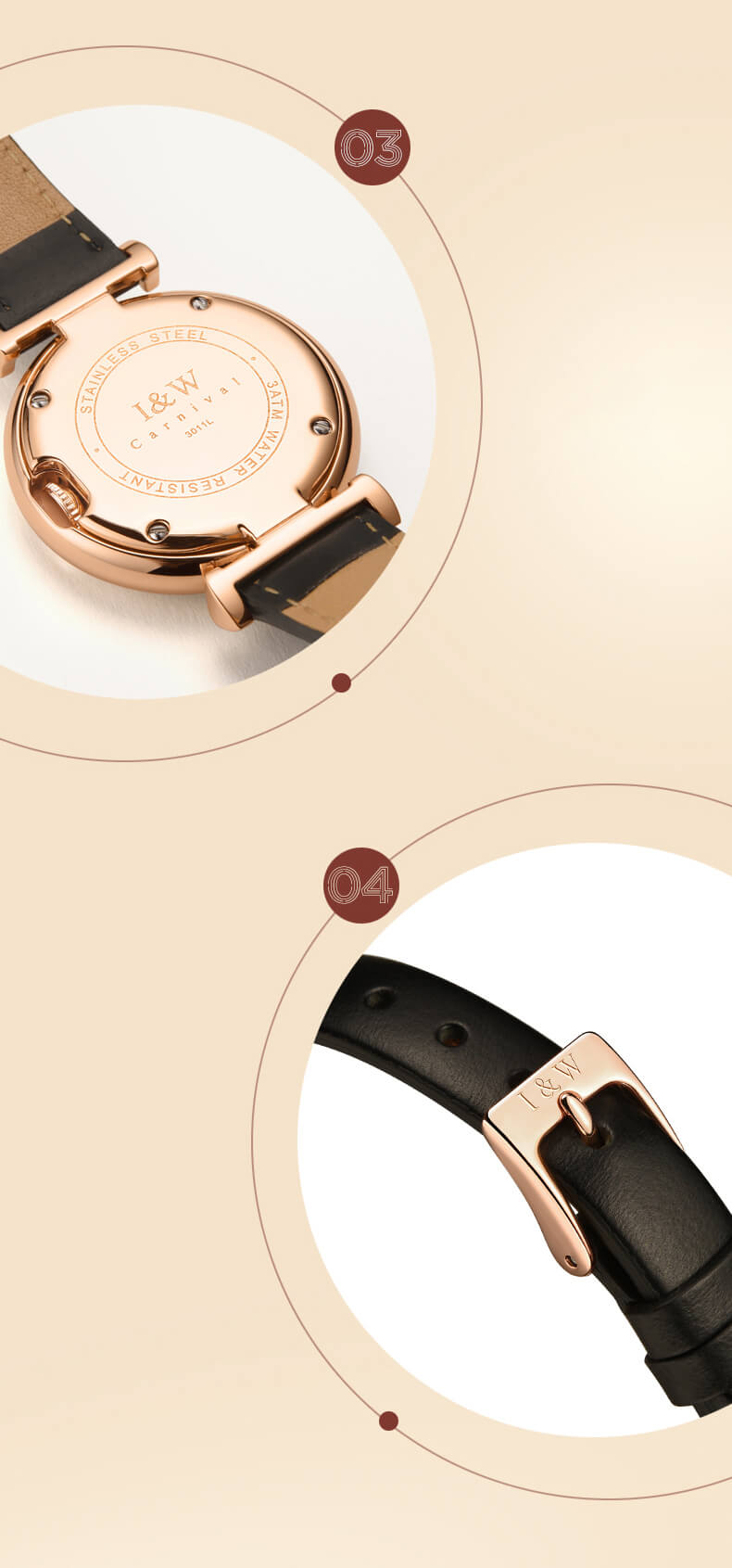 ✨Đồng Hồ Nữ I&W Carnival 3011L Chính Hãng BH 24T Chịu Nước 30m Kính Chống Xước Dây Da Cao Cấp ( Máy Quartz)