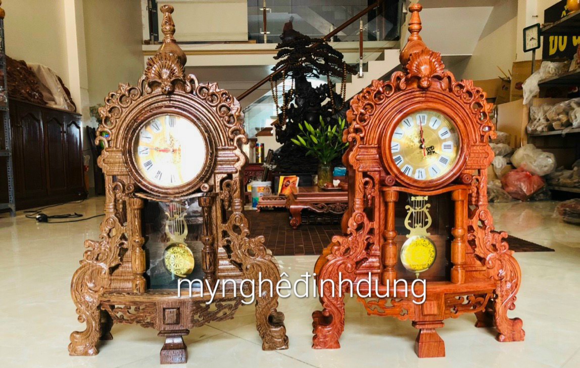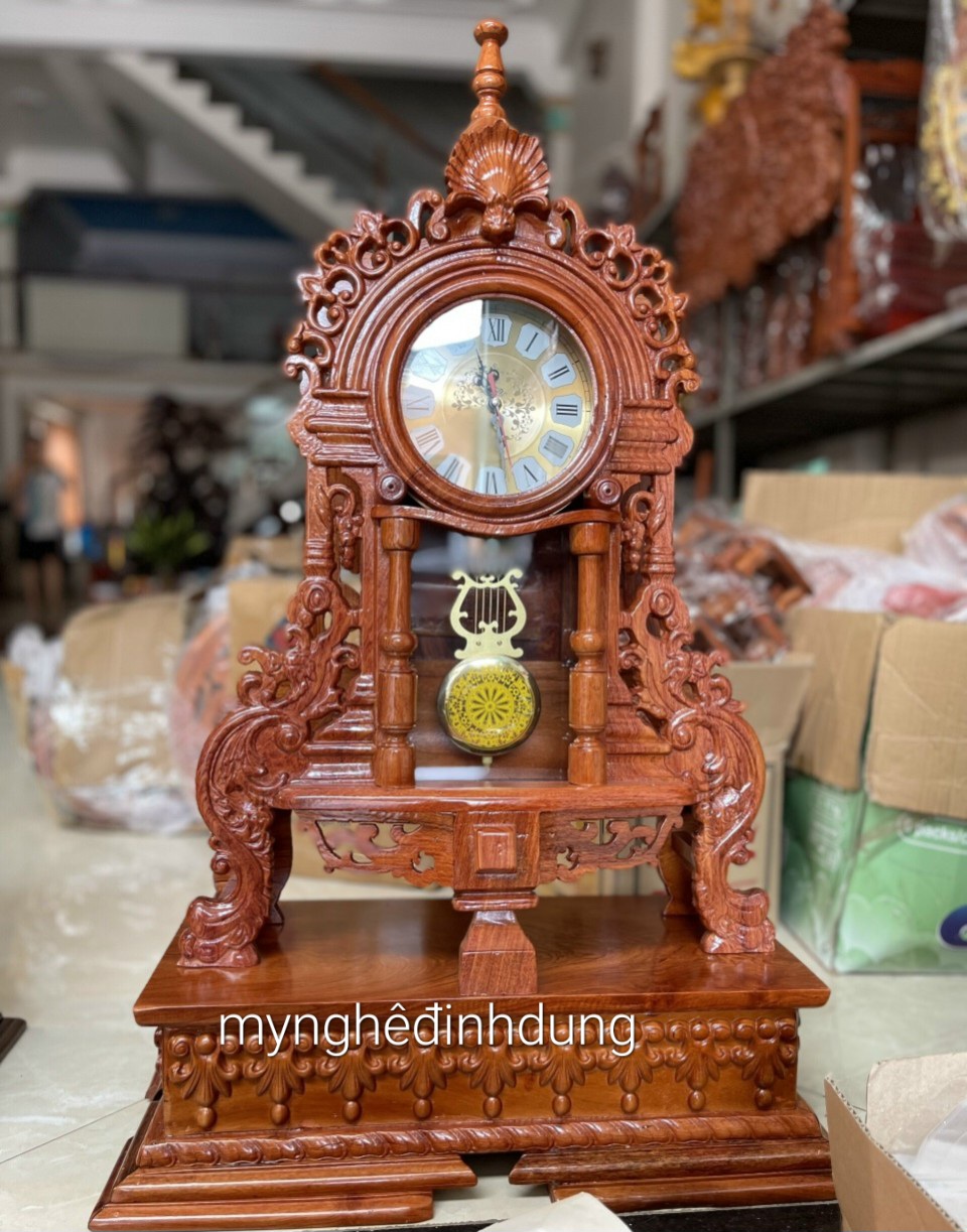✨Đồng hồ quả lắc tân cổ điển để bàn cao 70x45x15cm + kệ chân đế 15x52x29cm bằng gỗ hương đá
