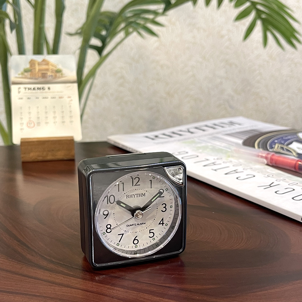 Đồng hồ báo thức Rhythm CRF801NR03 – KT:11.3 x 10.2 x 6.6cm. TRọng lượng 220g Vỏ nhựa. Dùng Pin. 2 chức năng Báo thức tiếng bíp và tiếng chuông reng, có chức năng reo lập