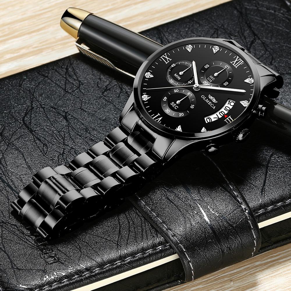 ✨Đồng hồ thạch anh OLMECA 0878M Nam Dây đeo bằng thép không gỉ, đa chức năng 3ATM Màn hình phát sáng Chronograph