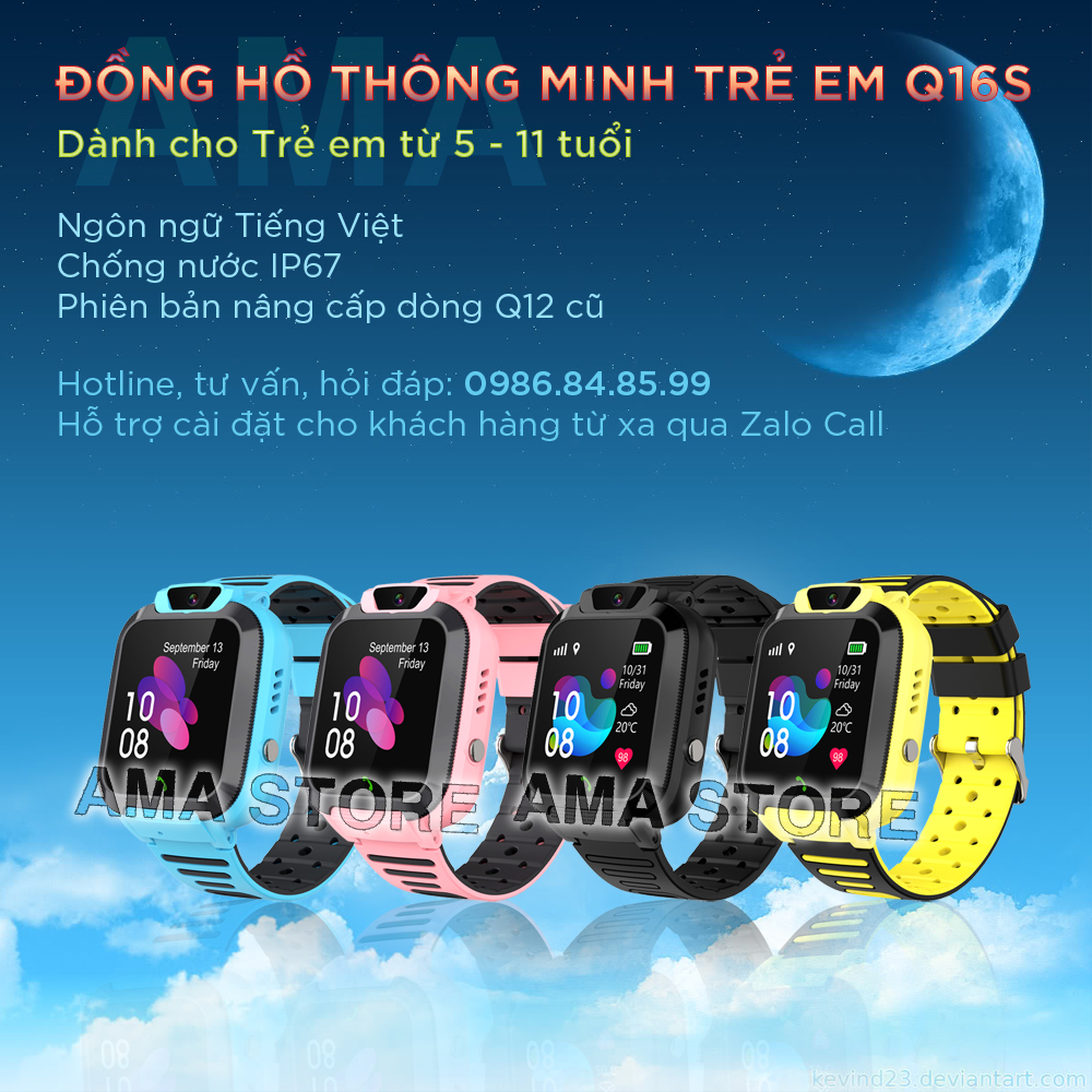 Đồng hồ Thông minh Q16S Thương hiệu AMA là sản phẩm mới năm 2022, đây là phiên bản nâng cấp của dòng đồng hồ Q12 trước đó, khả năng chống chịu nước tốt hơn, Pin có dung lượng lớn hơn, loa to, rõ ràng hơn. Q16S có tới 4 màu Xanh, Hồng, Đen, Vàng phù hợp với hầu hết trẻ em từ 4 - 10 tuổi. Quý khách hàng vui lòng chọn đúng màu trước khi mua.