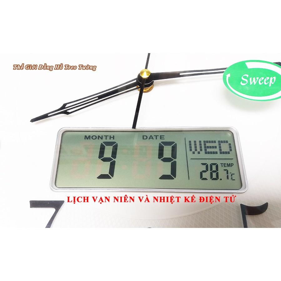 ✨Đồng Hồ Treo Tường KIM TRÔI EASTAR Tròn Kim Điện tử - LỊCH Vạn Niên và NHIỆT KẾ Điện tử - Mặt Trắng – Tặng 2 Pin Maxell