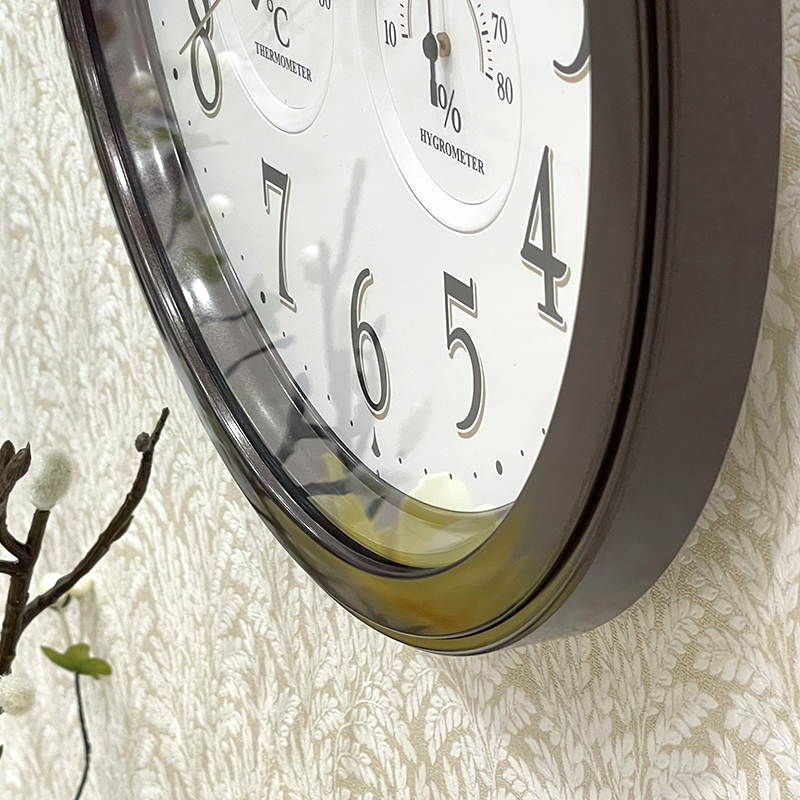 Mua tại TiktokĐồng hồ treo tường Nhật Bản RHYTHM 8MGA37SR06, 2 đồng hồ nhỏ thể hiện nhiệt độ và độ ẩm. vỏ nhựa màu nâu gỗ sang trọng. kích thước 33.0 x 4.7cm , nặng 780g. Máy chạy cực êm không phát tiếng kêu gây khó chịu, chính xác, bền bỉ. Sử dụng 1 pin AA.