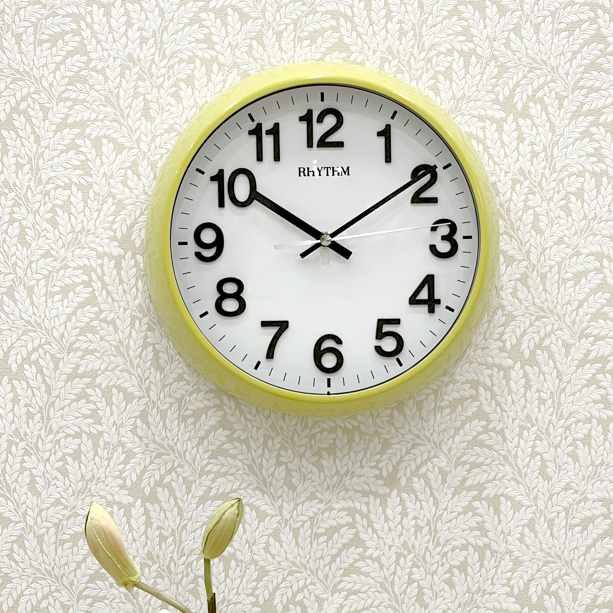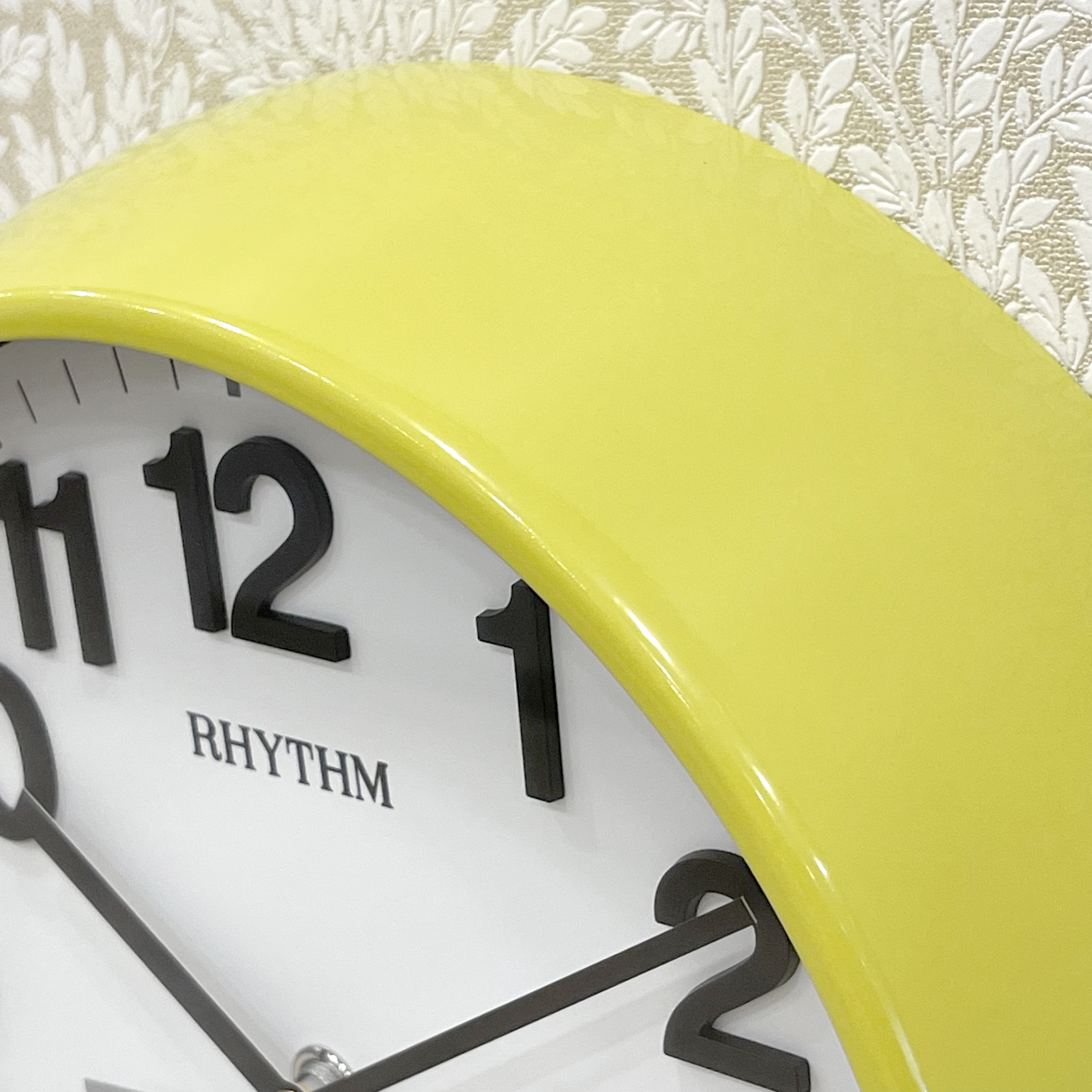 Đồng hồ treo tường Nhật Bản Rhythm CMG876NR18, dùng pin (AA x 1), vỏ nhựa màu vàng / kết hợp mạ vàng sang trọng. Kích thước 31.5 x 4.5cm, trọng lượng 625g. Máy kim trôi