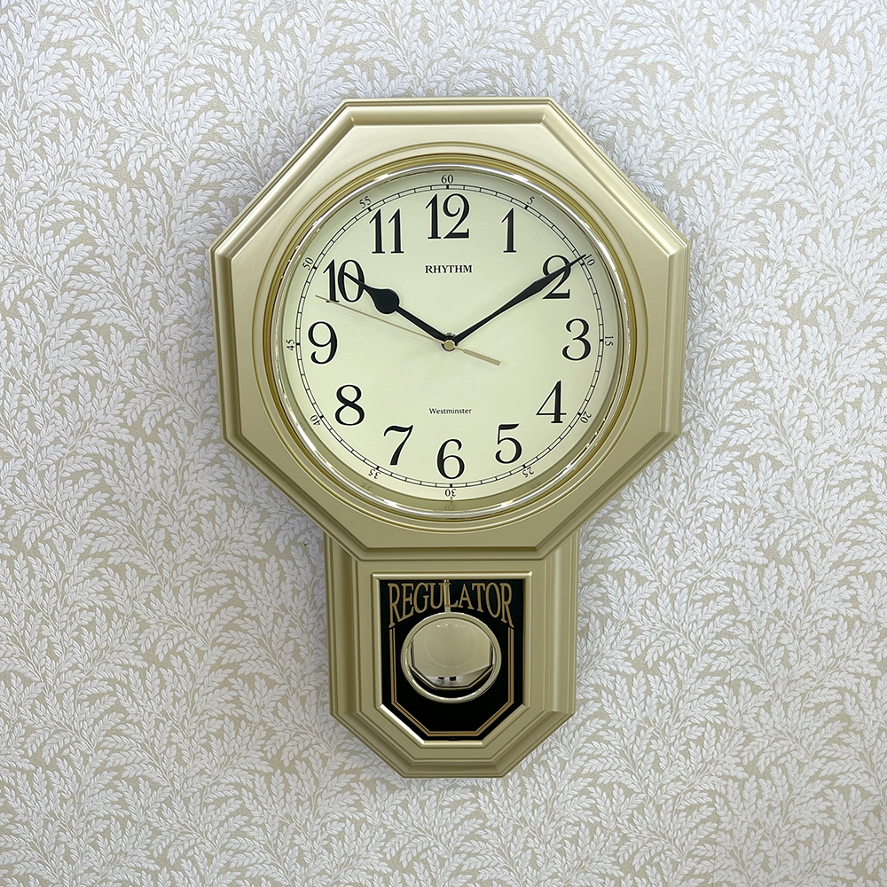 Mua tại TiktokĐồng hồ treo tường Nhật Bản Rhythm CMJ443BR18, dùng pin (AA x 4), có chuông, quả lắc,vỏ nhựa, màu vàng Kích thước 30.0 x 47.5 x 7.0cm, trọng lượng 1.2kg