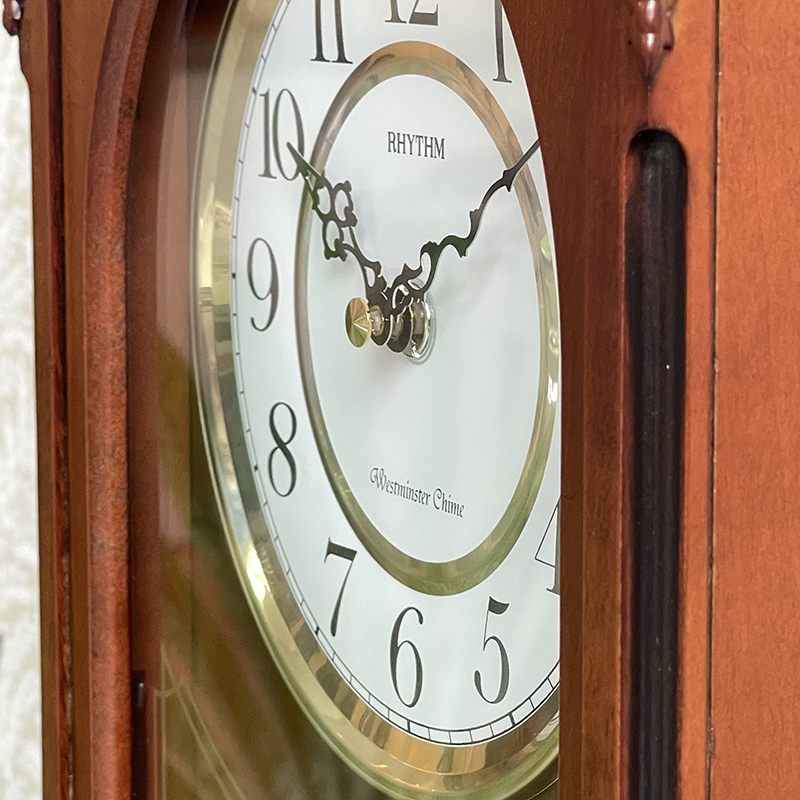 ✨Đồng hồ treo tường RHYTHM WOODEN WALL CLOCKS CHIME CMJ502FR06 ( Kích thước 23.0 x 48.1 x 10.9cm), Vỏ màu nâu