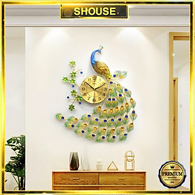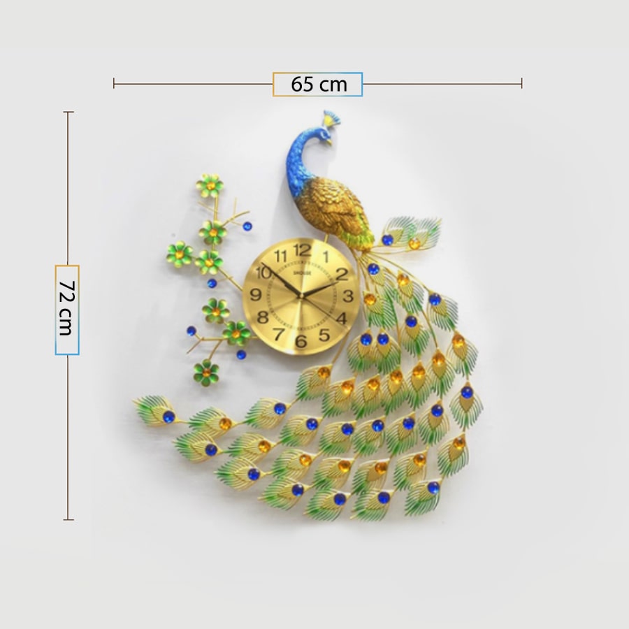 Đồng Hồ Treo Tường Trang Trí Đẹp Con Công S-A68 chim khổng tước độc lạ 3d cỡ lớn nghệ thuật phù hợp cho phòng khách, phòng ngủ