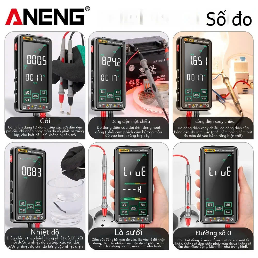 Đồng hồ đo điện tử ANENG 683 cảm ứng sử dụng pin sạc nhiều chức năng hay.