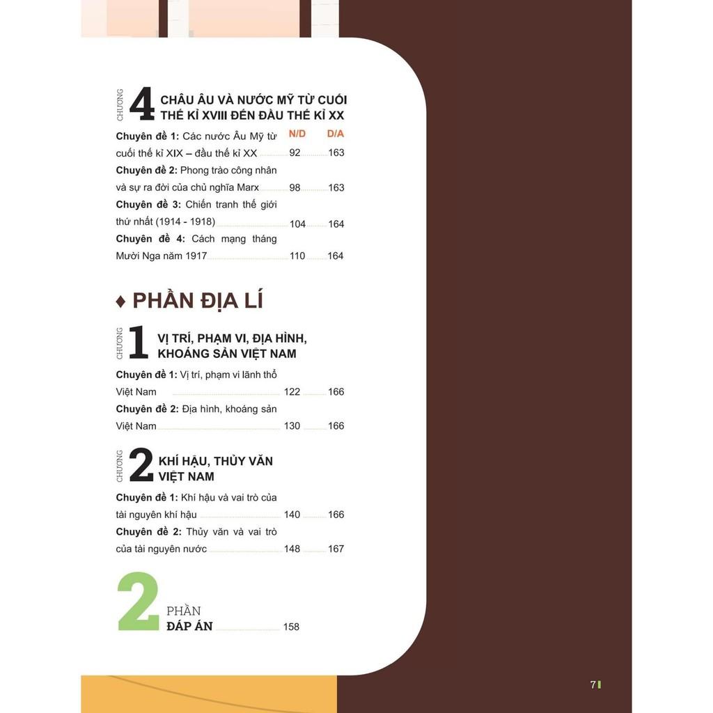 • Phần 2: Đáp án Cam kết: 100% đều có đáp án + lời giải chi tiết, cách trình bày hướng dẫn chi tiết dễ hiểu. Nếu con xuất phát điểm hơi yếu vẫn có thể hiểu được và dần dần từng bước tiến bộ khi học đúng theo lộ trình và phương pháp của sách. ƯU ĐIỂM NỔI BẬT CỦA BỘ SÁCH ĐỘT PHÁ TƯ DUY: Bám sát chương trình học: Giúp học sinh nắm vững kiến thức cốt lõi, tự tin trong mọi kỳ thi với lộ trình học rõ ràng, hiệu quả. Infographic trực quan: Lý thuyết được minh họa sinh động, dễ hiểu, giúp học sinh tiếp thu nhanh chóng. Phân dạng bài tập chi tiết: Bài tập được phân loại với hướng dẫn cụ thể, phát triển tư duy giải quyết vấn đề. Sơ đồ tư duy: Hệ thống hóa kiến thức rõ ràng, khơi gợi tư duy logic và sáng tạo. Đề tự đánh giá: Giúp học sinh tự ôn luyện, phát hiện và cải thiện lỗ hổng kiến thức. Học liệu tặng kèm: Cung cấp tài liệu phong phú, luôn cập nhật, hỗ trợ học tập toàn diện. ... và rất nhiều điều tuyệt vời khác nữa. KHÁM PHÁ 10 LỢI ÍCH TỪ BỘ SÁCH ĐỘT PHÁ TƯ DUY: Nắm vững kiến thức cốt lõi: Giúp học sinh hiểu sâu và chắc chắn kiến thức nền tảng trong chương trình Lịch Sử và Địa Lý lớp 8. Tự tin trong các kỳ thi: Với phương pháp học hiệu quả, học sinh có thể đạt điểm cao mà không cần học thêm quá nhiều. Phát triển tư duy logic: Hệ thống bài tập và sơ đồ tư duy giúp rèn luyện tư duy phân tích và giải quyết vấn đề. Tiếp cận kiến thức dễ dàng hơn: Infographic sinh động giúp học sinh dễ dàng hiểu và ghi nhớ kiến thức một cách trực quan. Tự học hiệu quả: Học sinh có thể tự lập kế hoạch học tập và tiến bộ mà không cần quá nhiều sự hỗ trợ từ người khác. Phát hiện và cải thiện lỗ hổng kiến thức: Hệ thống đề tự đánh giá giúp học sinh nhận ra điểm yếu và cải thiện kịp thời. Tăng cường khả năng sáng tạo: Sơ đồ tư duy không chỉ giúp hệ thống hóa kiến thức mà còn kích thích tư duy sáng tạo. Tiết kiệm thời gian học thêm: Bộ sách cung cấp lộ trình rõ ràng, giúp học sinh tự học tại nhà mà vẫn đạt hiệu quả cao. Tăng động lực học tập: Phương pháp học mới lạ, hấp dẫn giúp học sinh hứng thú và yêu thích việc học hơn. Truy cập học liệu phong phú: Học sinh được hỗ trợ bởi hệ thống học liệu đa dạng và luôn cập nhật, giúp quá trình học trở nên dễ dàng hơn. Bộ sách Đột Phá Tư Duy Lịch Sử và Địa Lý Lớp 8 chính là minh chứng cho một chân lý đơn giản: “Chỉ cần học đúng cách, mọi học sinh đều có thể tự học và đạt điểm cao dễ dàng.” Với bộ sách này, các em học sinh sẽ được trang bị những công cụ cần thiết để tự tin đạt điểm 8 trở lên mà không cần phải học thêm. Hãy để bộ sách trở thành người bạn đồng hành đáng tin cậy, giúp các em vững bước trên con đường học tập và chinh phục mọi kỳ thi!