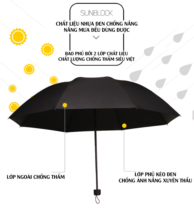 - Được bao phủ bởi 2 lớp chất liệu cao cấp, lớp ngoài chống thấm siêu việt, lớp nhựa đen chống ánh nắng xuyên thấu, chống UV rất hiệu quả