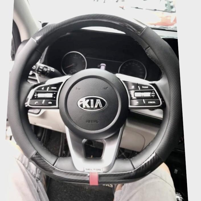Bọc vô lăng cacbon D cut phối da thoàng khí