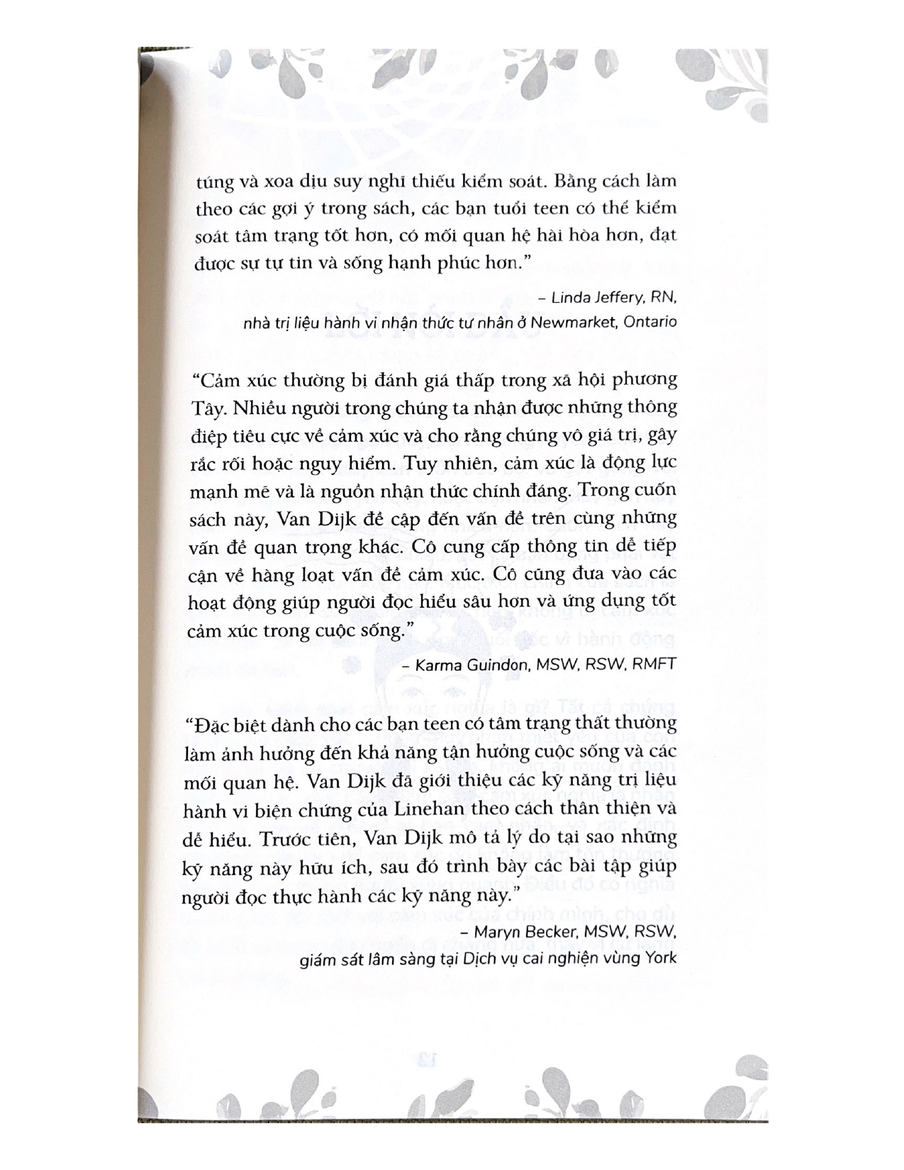 "Cuộc đời cho bạn vô vàn lý do để nổi giận, buồn bã, sợ hãi, thất vọng – và những cảm xúc này là bình thường. Nhưng đôi khi, bạn cảm thấy như cảm xúc đang giành lấy quyền điều khiển, vượt khỏi tầm kiểm soát của mình, như thể cảm xúc có trí óc riêng vậy. Những cảm xúc choáng ngợp này còn khiến cho tình hình tồi tệ hơn khi can thiệp vào chuyện học hành ở trường, phá hoại mối quan hệ, và ngăn không cho bạn tận hưởng cuộc sống vui vẻ, hạnh phúc.