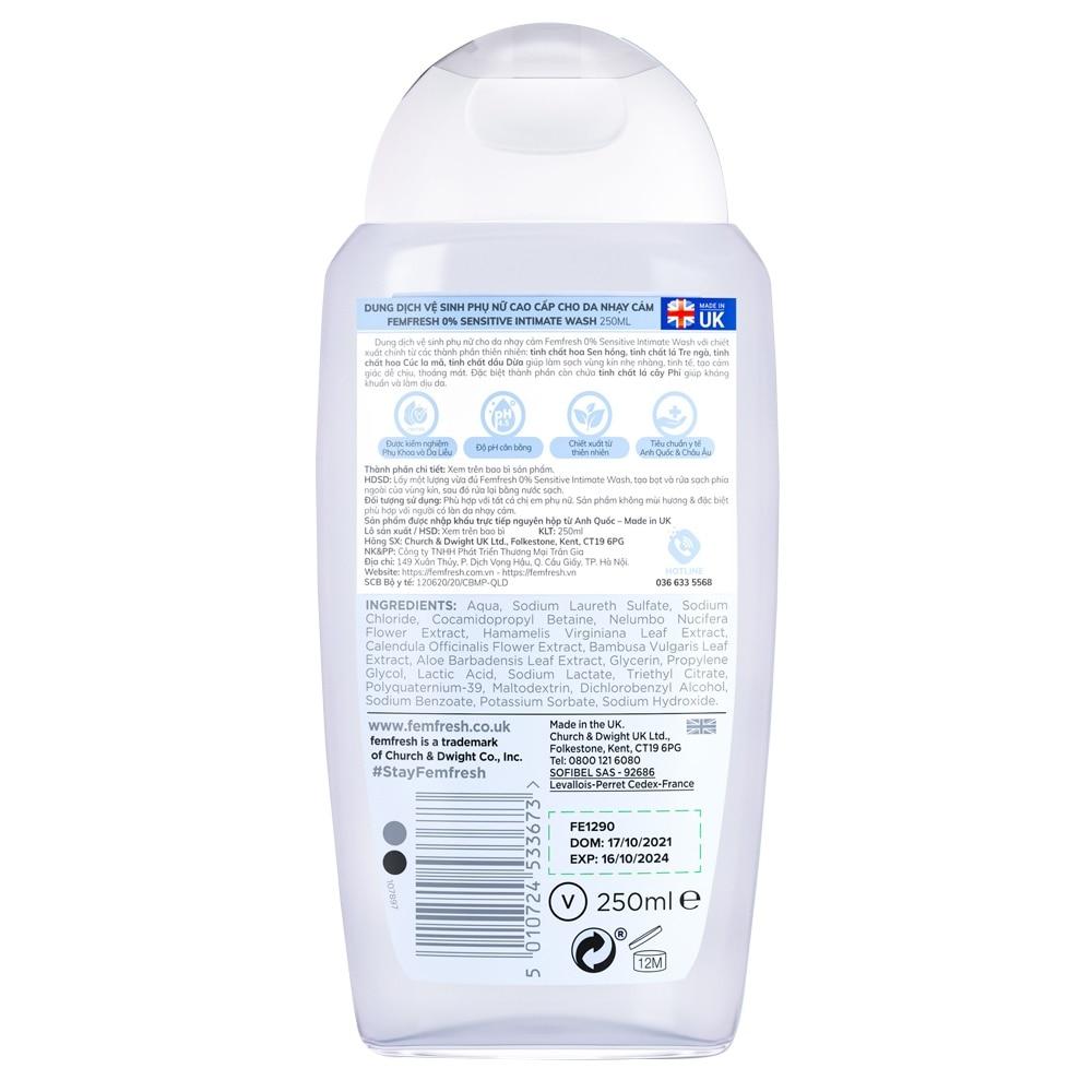 Mua tại TiktokDung Dịch Vệ Sinh Phụ Nữ Femfresh 0% Sensitive Intimate Wash 250ml Thành Phần Chính và Công Dụng: