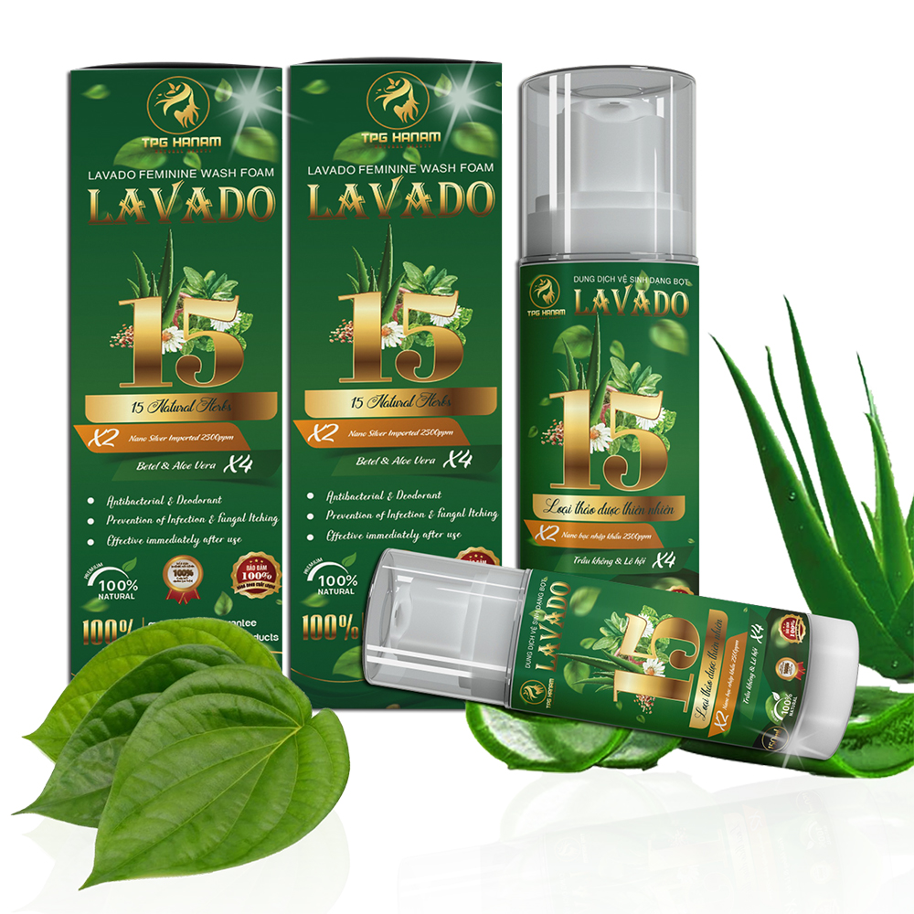 Dung dịch vệ sinh phụ nữ Lavado công thức mới 2022 - X2 Nano Bạc nhập khẩu 2500 ppm - X4 Trầu không & Lô Hội - Chiết xuất từ 15 loại thảo dược thiên