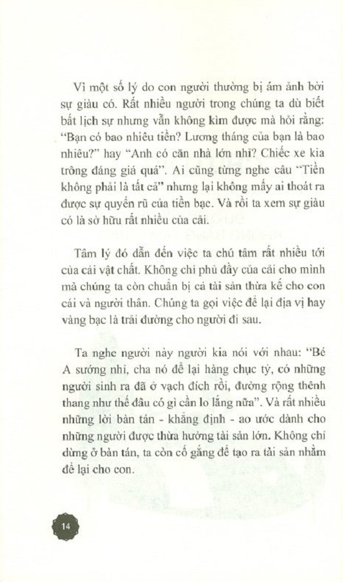 Dưỡng Tâm Giàu Có Dưỡng Thân Nghèo Khó GIỚI THIỆU SÁCH: Dưỡng Tâm Giàu Có Dưỡng Thân Nghèo Khó là cuốn sách mang lại định nghĩa hoàn hảo về “sự giàu có”. Sự giàu có là một đáp án khiến tôi mất nhiều năm để nhận thức nên, cũng chính là triết lý xuyên suốt giúp tôi sống tốt hơn mỗi ngày. Tôi đã thực sự tin rằng, giàu có không chỉ là khi tích cóp thật nhiều mà nó còn tồn tại khi tôi đem cho đi. Chính vì suy nghĩ tích cực này, đã đem tôi đến bên những câu chuyện khó khăn của mỗi người, chia sẻ và hạnh phúc bên niềm vui của họ. Dưỡng Tâm Giàu Có Dưỡng Thân Nghèo Khó đã đưa tôi đến thế giới của an yên, từ bi, đạo hạnh mà bao người mơ ước. Đừng vội đem những khó khăn bạn đang gặp phải so bì với hạnh phúc người khác. Người ta sinh cùng giờ còn có số mệnh khác nhau mà. Chỉ cần bạn cảm thấy vừa đủ thì đó đã là một sự sung túc bao người mong ước rồi. Tôi tin chắc rằng cuốn sách nhỏ này sẽ giúp bạn tự tin sống cuộc đời của mình, dũng cảm đối mặt với khó khăn, và rộng lượng chia sẻ cùng mọi người. Mong rằng trái tim bạn sẽ sớm giàu có. (Nguyễn Anh Dũng - Sáng Lập Sbooks) Bằng những câu chuyện kể với giọng văn nhẹ nhàng, dễ thương, những triết lý nhân sinh gần gũi với cuộc sống đời thường, cuốn sách sẽ mang lại cho bạn những trải nghiệm quí giá để xây dựng cho mình một cuộc sống thật bình yên và hạnh phúc. Không phải ai cũng có thể hài lòng với những gì mình đang sở hữu, bởi họ cho rằng giàu có chính là sự sung túc về vật chất và tiền bạc. Vì vậy mà suốt cuộc đời, họ cứ mải miết chạy theo những giá trị vật chất bình thường mà quên đi còn vô số những giá trị khác nữa song hành bên họ. Một khi con người ta biết đủ thì mọi thiếu thốn về vật chất cũng chính là một sự sung túc trong tâm thức của mình. Một khi tâm con người ta không còn sân si thì đó chính là lúc trái tim mình luôn giàu có tình thương yêu vô bờ bến. Dưỡng Tâm Giàu Có Dưỡng Thân Nghèo Khó là cuốn sách giá trị cho mọi độ tuổi để làm cho cuộc sống trở nên nhẹ nhàng và hạnh phúc hơn. Trong thực tế, hiếm có ai cảm thấy hạnh phúc khi bản thân sống trong cảnh nghèo túng nhưng cũng ít người vui vẻ khi giàu có. Khái niệm hạnh phúc cần được cắt nghĩa và làm rõ sâu hơn nữa so với những điều người ta gán ghép cho nó hiện nay. Hãy đọc những cuốn sách giá trị như Dưỡng Tâm Giàu Có Dưỡng Thân Nghèo Khó để xây dựng lối sống yêu thương lành mạnh, để bồi dưỡng thân tâm mình dù nghèo khó vẫn luôn lạc quan và giàu năng lượng tích cực. Cuốn sách cũng sẽ giúp cho chúng ta tự xây dựng cho mình một cuộc sống thật hạnh phúc theo đúng nghĩa mà mình luôn mong muốn. (Ths. Thái Thu Hoài, Phó trưởng khoa Xuất bản Trường Đại học Văn hóa Tp.HCM). Dưỡng Tâm Giàu Có Dưỡng Thân Nghèo Khó là cẩm nang vàng cho chặng đời mỗi người trẻ không bị bấp bênh, lạc hướng bởi những cám dỗ. Chỉ khi bạn đặt tất cả niềm tin của mình, rằng bạn xứng đáng được hạnh phúc thì mọi chuyện sẽ tốt đẹp hơn. Ai trong chúng ta cũng đều phải trải qua những thời khắc gian nan, gần như mất phương hướng; nhưng chỉ cần tiết chế tham sân si của bản thân, trở lại với bản ngã và lấy lại tâm thế, thì có thể tìm thấy hạnh phúc trong phút chốc. Triết lý xuyên suốt của cuốn sách sẽ đưa bạn vượt qua những ngày tháng khó khăn nhất với tâm thế an yên. Dưỡng Tâm Giàu Có Dưỡng Thân Nghèo Khó là một cuốn sách có thể “gối đầu giường” cho những người trẻ tuổi nhiều ước vọng nhưng dễ thất vọng. Hãy chọn con đường đưa bạn đến hạnh phúc. Và nếu bạn đã thành công thì bạn vẫn nên có cuốn sách này để nhắc nhở mình hàng ngày. (Nhà văn Võ Thị Xuân Hà, Nguyên Trưởng Ban Nhà văn Trẻ toàn quốc, Nguyên Tổng biên tập Tạp chí Nhà văn Phó ban Thường trực Ban Sáng tác Hội Nhà văn Việt Nam).