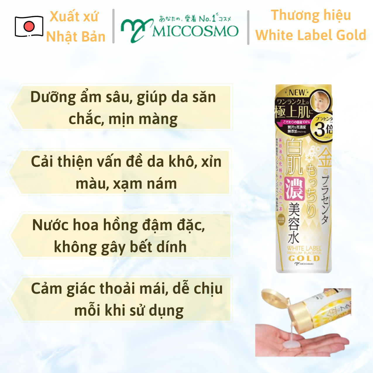 COMBO BỘ 3 SẢN PHẨM DƯỠNG DA CAO CẤP NHAU THAI NHẬT BẢN - MICCOSMO WHITE LABEL GOLD 1. Nước Hoa Hồng Dưỡng Da Cao Cấp Nhau