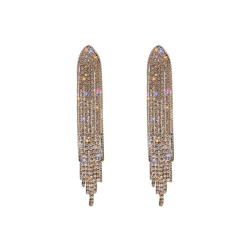 Earrings nữ dáng dài gắn đá lấp lánh sành điệu • Chất liệu: Hợp kim cao cấp an toàn với da. • Thiết kế tinh xảo, đẳng cấp và style trẻ trung, thời trang. •