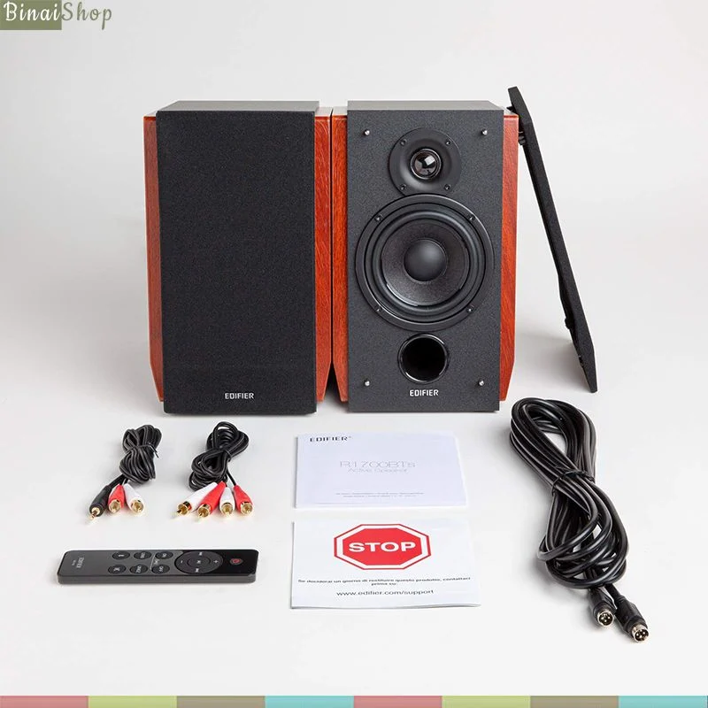 - Sách hướng dẫn THÔNG SỐ KỸ THUẬT Name product R1700BTs Total Output Power (RMS) 15W × 2 (tweeter) + 18W × 2 (mid-bass driver) Driver Units 4" (Mid-range and bass) + 0.75" (Treble) Audio Inputs Dual RCA, Bluetooth Bluetooth Version V5.0 Signal-to-Noise Rate ≥ 85dB (A) Frequency Response 52Hz - 20kHz lnput Sensitivity Line In1: 700 ± 50mV Line In2: 550 ± 50mV Bluetooth: 400 ± 50mFFS Dimensions (W x H x Dmm) 154mm x 254mm x 214mm Net Weight 6.6kg Keyword: Edifier R1700BTs, loa Edifier, loa nghe nhạc, loa nghe nhạc cao cấp, loa nghe nhạc hay, loa nghe nhạc giá rẻ, loa máy tính, loa xem phim, loa xem phim nghe nhạc, loa xem phim giá rẻ, loa bookself, loa bluetooth
