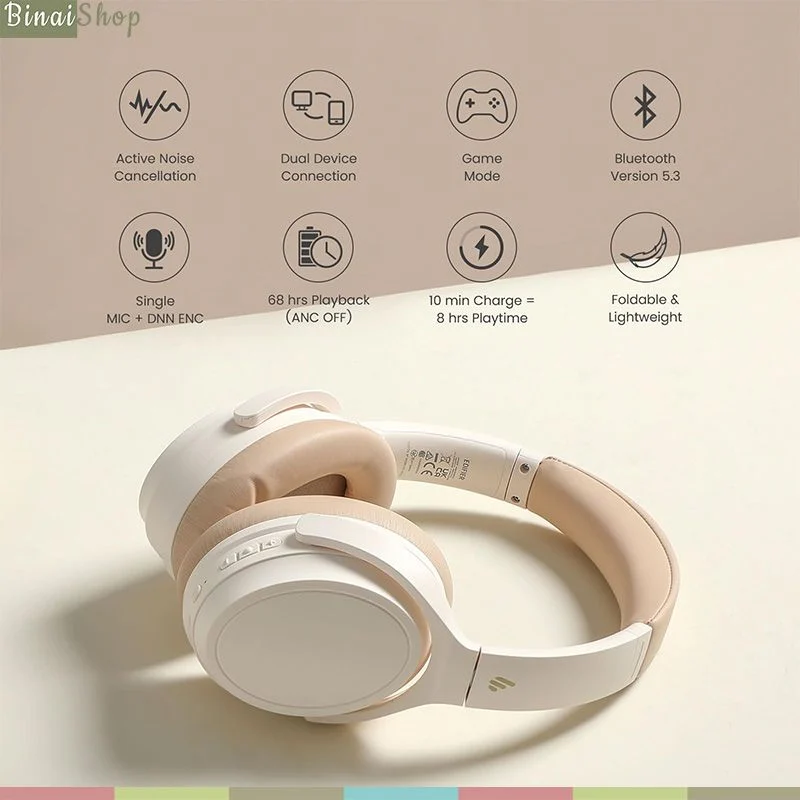 Mua tại Tiktok- Tai nghe Edifier WH700NB thiết kế nhỏ gọn cùng chức năng gấp hoàn toàn giúp nâng cao tính di động, thời lượng pin dài lên đến 68 giờ (phát nhạc thông thường), 45 giờ đói với ANC, kết nối Bluetooth 5.3 ổn định nhanh chóng và hai thiết bị cùng một lúc , công nghệ lọc tiếng ồn ANC mang đến không gian yên tĩnh, thưởng thức âm nhạc và đàm thoại chất lượng cao. TÍNH NĂNG CƠ BẢN