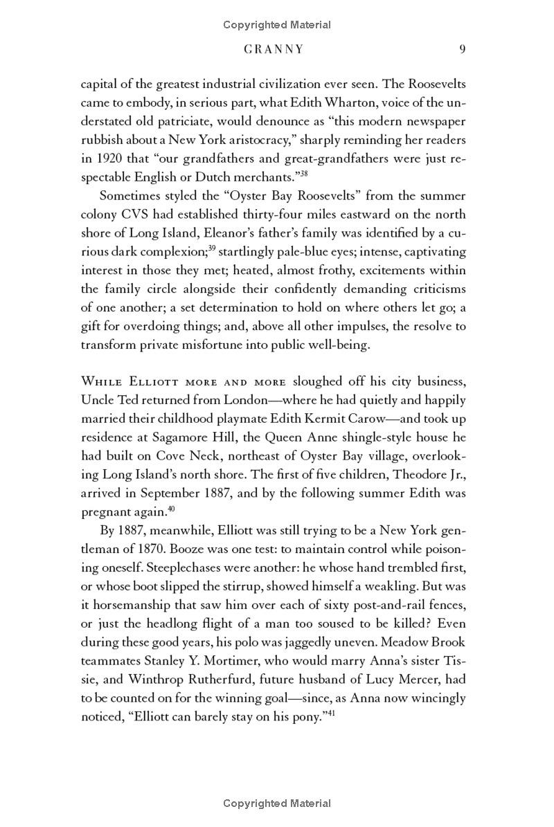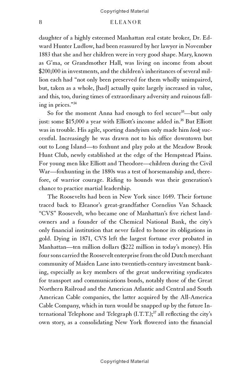 In the first single-volume cradle-to-grave portrait in six decades, acclaimed biographer David Michaelis delivers a stunning account of Eleanor Roosevelt’s remarkable life of transformation. An orphaned niece of President Theodore Roosevelt, she converted her Gilded Age childhood of denial and secrecy into an irreconcilable marriage with her ambitious fifth cousin Franklin. Despite their inability to make each other happy, Franklin Roosevelt transformed Eleanor from a settlement house volunteer on New York’s Lower East Side into a matching partner in New York’s most important power couple in a generation.