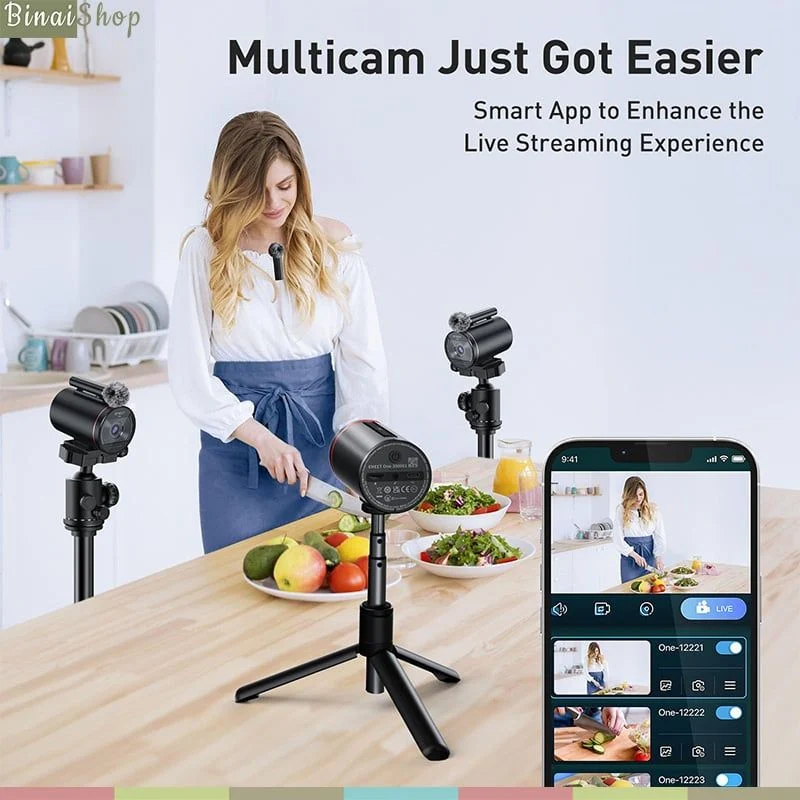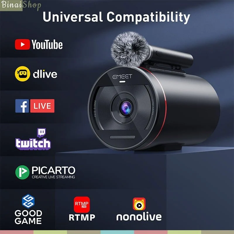 - Emeet StreamCam One là webcam không dây sử dụng wifi với độ phân giải HD 1080P, ống kính Prime 7 phần, HDR cao, trải nghiệm hình ảnh sắc nét với cảm biến mới của So.ny, một mic tháo rời và hai mic chống ồn tích hợp mang lại giọng nói rõ ràng khi di chuyển thích hợp để livestream hay vlog. Ngoài ra phần mềm EMEETSTREAM cho phép điều chỉnh phóng to/thu nhỏ màn hình, lưu trữ dữ liệu, chuyển đổi giữa các camera, quy trình phát trực tiếp. TÍNH NĂNG CƠ BẢN