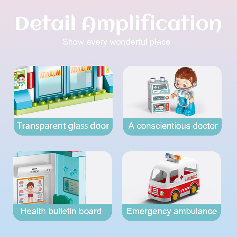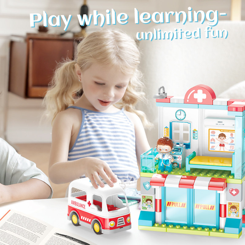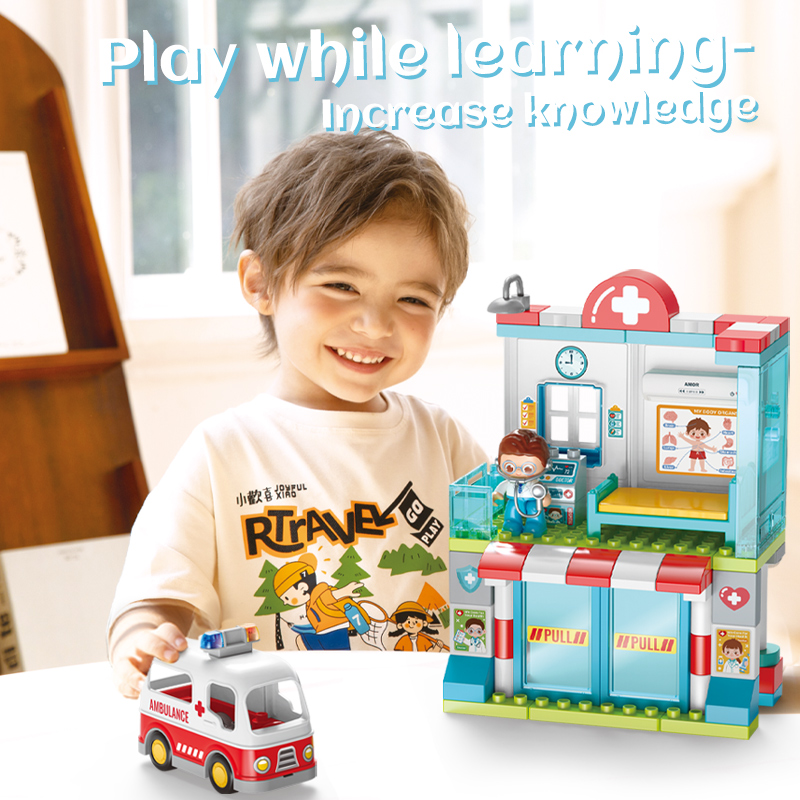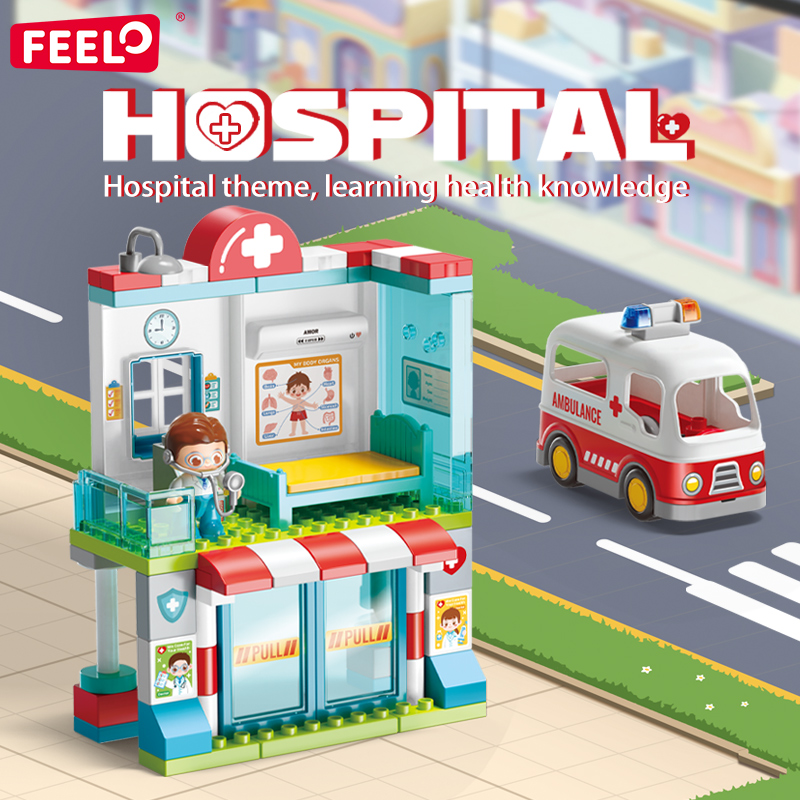 Mua tại TiktokBệnh viện lắp ráp – FEELO (76 PCS) – Bộ đồ chơi lắp ráp mô phỏng bệnh viện với xe cấp cứu, bác sĩ, giường bệnh và nhiều chi tiết y tế sinh động – Gồm 76 chi tiết lớn, dễ lắp ráp, an toàn cho trẻ nhỏ từ 3 tuổi trở lên – Giúp bé học về nghề nghiệp bác sĩ, phát triển kỹ năng kể chuyện, tư duy tình huống và khả năng chăm sóc người khác
