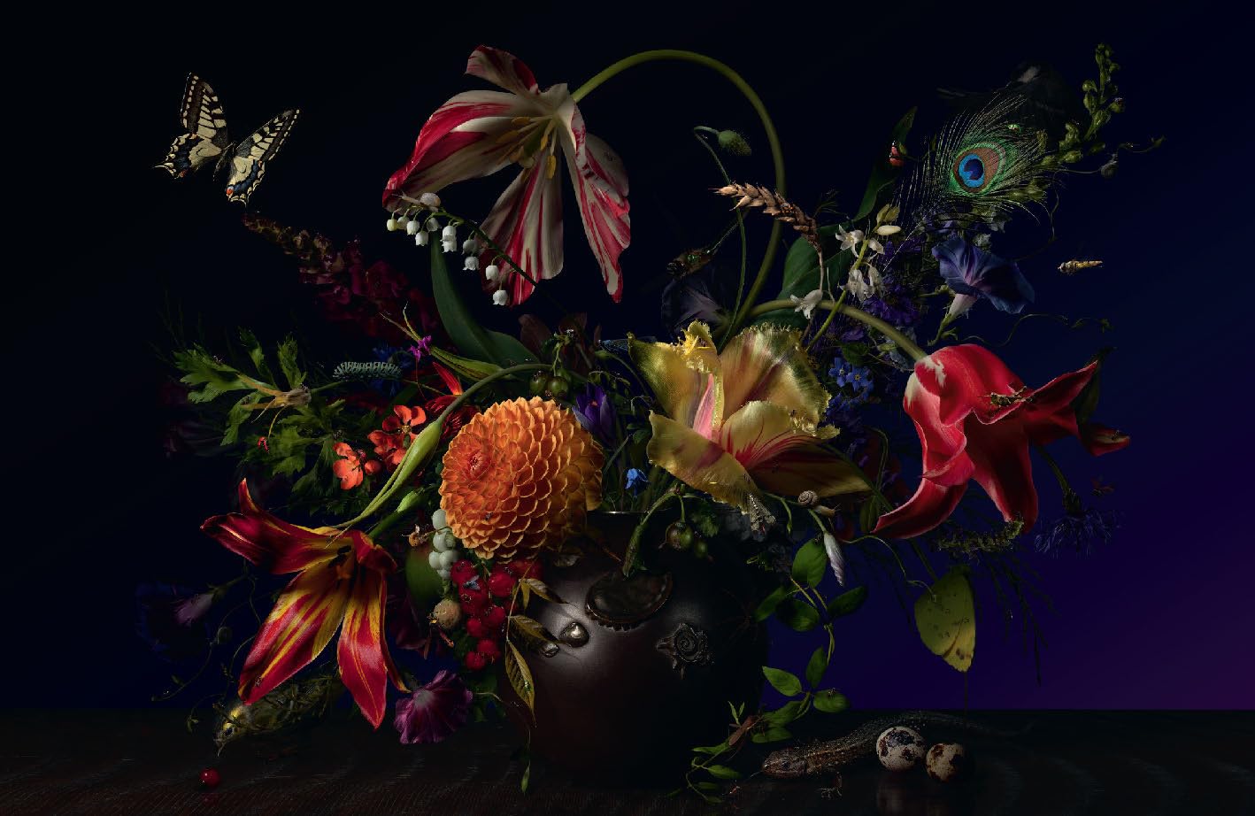 Bas Meeuws' photographs are of an old-fashioned beauty and at the same time radically contemporary. Flower by flower he composes his still lifes, but digitally: the basis for Meeuws' monumental works are digital photographs of individual flowers. They nod to the Dutch masters of the 17th-century with their love of luxury, but also their eye for the ephemeral. Meeuws struck a chord in the art world with his floral still lifes. He is represented by Dutch and Taiwanese galleries and exhibits from Amsterdam to New Delhi.