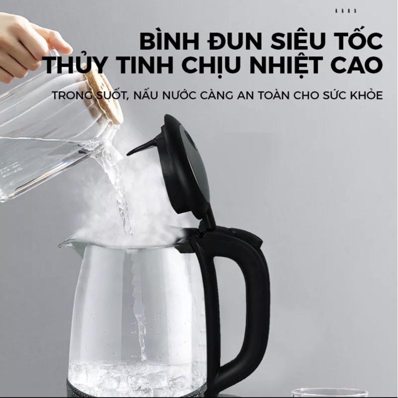 Mua tại TiktokSản phẩm Đức, chất lượng quốc tế Glass electric kettle 1, Bình đun siêu tốc thủy tinh chịu nhiệt cao,Trong suốt,nấu nước càng an toàn cho sức khỏe。 2、Capacity 1.7L 3、Có đèn Led xanh,Khi nấu nước có ánh đèn xanh,nét đẹp trong nấu nướng 4、Tự động mở,Nấu nước hoàn toàn tự động ngắt điện,an toàn tuyệt đối 5、Chức năng chóng cháy khét,đảm bảo an toàn 6、một ấn mở nắp,thao tác 1 tay,đơn giản an toàn 7、Đế tách rời,đế và bình có thể xoay 360 độ,có thể đặt tùy thích
