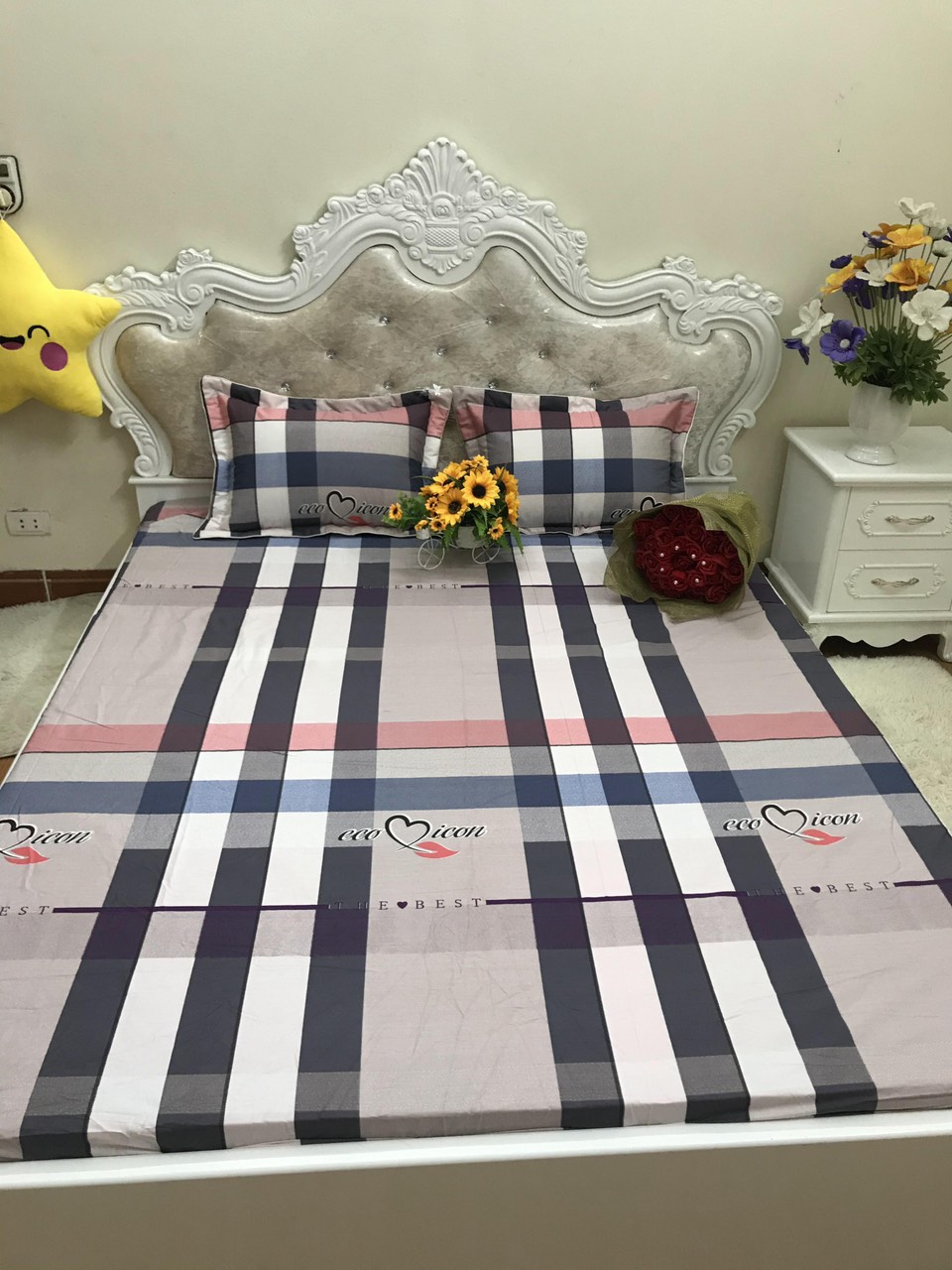 QUÝ KHÁCH LƯU Ý: Ghi chú hoặc nhắn size đệm cho shop ( Rộng x Dài x Cao) để shop bo chun miễn phí nha Sét ga gối cotton Tici cao cấp phong cách Hàn