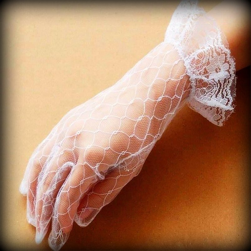 Găng tay Cô dâu và Dạ hội MS: 37513 Chất liệu: ren mắt cáo, cổ găng đính ruy băng Màu sắc: trắng kem