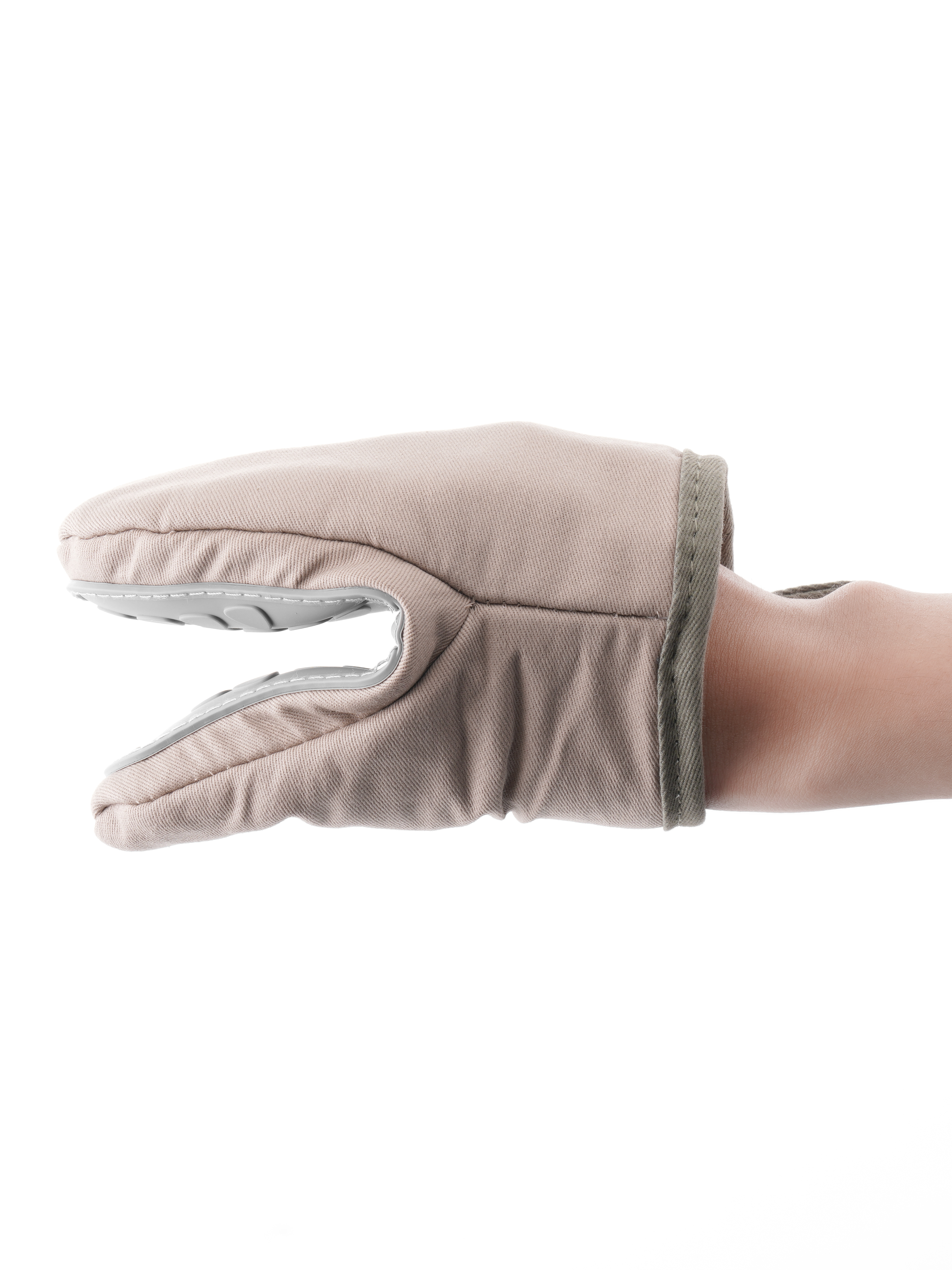 Găng tay silicone nhấc nồi kích thước : 195x125x20 màu sắc : nâu + xám chất liệu ; Silicone , Textile