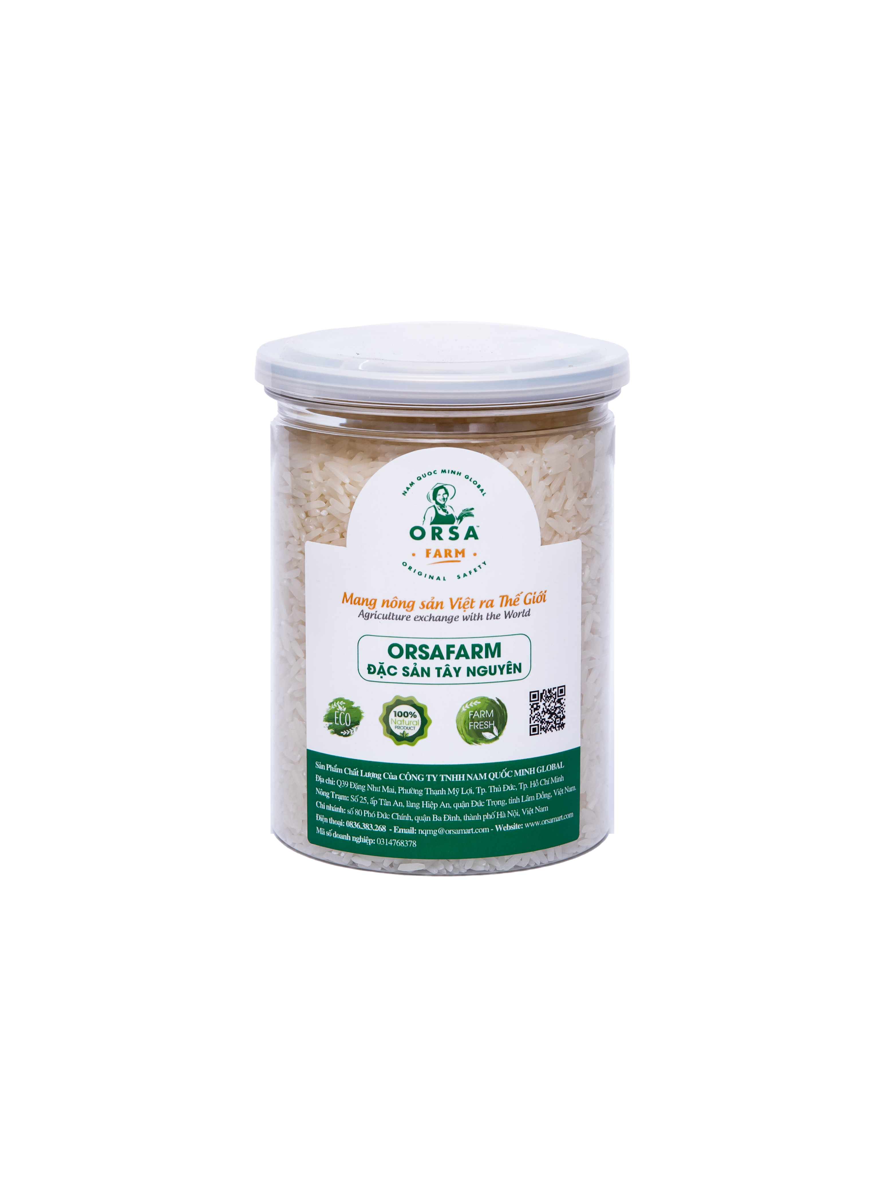 Với sản phẩm tươi sống, trọng lượng thực tế có thể chênh lệch khoảng 10%. Gạo Đặc Sản OrSaFarm Tây Nguyên Buôn Choah Vietgap Gạo ST 24 OrSaFarm Tây Nguyên Buôn Choah Vietgap (Art 30030316 - Barcode 8936200500021 ) Gạo ST24 OrSaFarm Buôn Choah thuộc loại gạo ST24 được công nhận “Ngon nhất thế giới 2019” (theo World's Best Rice 2019). Lúa OrSaFarm buôn Choah được trồng trên vùng đất núi lửa Bazan đầy dưỡng chất, vùng núi lửa với đất tổ ong hiếm có giữ độ ẩm, giữ được dưỡng chất và dưỡng vi sinh có ích cho đất, đất tổ ong núi lửa cũng giúp lọc sạch nước một cách tự nhiên và giữ nước cho cây lúa mọc thẳng, hạt lúa cúi đầu siêu sản vàng ươm. Đa số nông dân tham gia trồng lúa Orsafarm là người dân tộc thiểu số chăm chỉ và hiền hậu. The OrsaFarm Buon Choah Rice is grown in nutrient-rich basalt volcanic soils with rare honeycomb formations that retain moisture, keeping nutrients, and beneficial microorganisms in the soil, which also naturely purifies the water. This makes the OrsaFarm rice grow strong and healthy with a large head of Super Golden Grain. The Rade rice farmers in the Vietnamese Highlands who grow Orsafarm Buon Choah Rice are very kind and hardworking people. Products of Nam Quoc Minh Global Company Buôn Choah nằm ven sông Krông Nô, thuộc tỉnh Đắk Nông. Vùng đất trên nền núi lửa thuộc khu vực Tây Nguyên – nơi có đầy nắng và gió, nhưng thời tiết lại mát mẻ quanh năm. Vì đây là vùng đất núi lửa Bazan nên đất thích hợp để làm nông nghiệp do chứa nhiều dưỡng chất được hình thành qua nhiều năm. Kết hợp thời tiết ôn hòa tạ ra môi trường thuận lợi để canh tác các loại giống lúa mới. Buôn Choah biến vùng đất núi lửa Công Viên Địa Chất Toàn Cầu thành vựa lúa an toàn của Tây Nguyên. Buon Choah is located along the Krong No river, in Dak Nong province in the Central Highlands it’s weather is sunny and windy, but cool all year round. Because this is a basalt volcanic land, the soil is suitable for agriculture because it contains many nutrients formed over the years. Combining mild weather creates a favorable environment for the cultivation of new rice varieties. Buon Choah turns the volcanic land of Global Geopark into a safe rice granary of the Central Highlands.