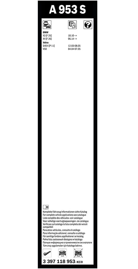 THÔNG TIN SẢN PHẨM: - Công nghệ sản xuất: Bosch - Germany - Mã phụ tùng Bosch: 3397118953 - Mã sản phẩm: A953S - Xuất xứ: Made in BELGIUM - Kích thước : 26 inch/20