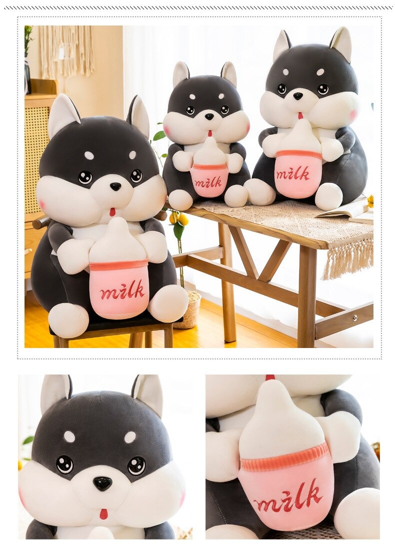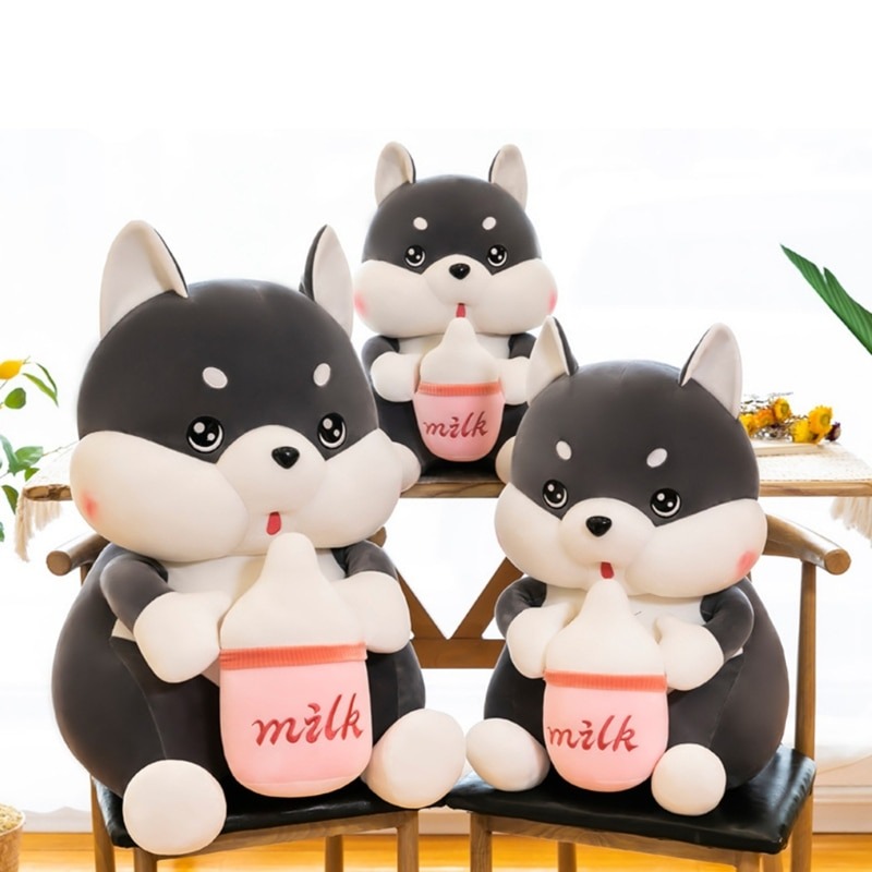 Gấu Bông Chó Husky Ôm Bình Sữa