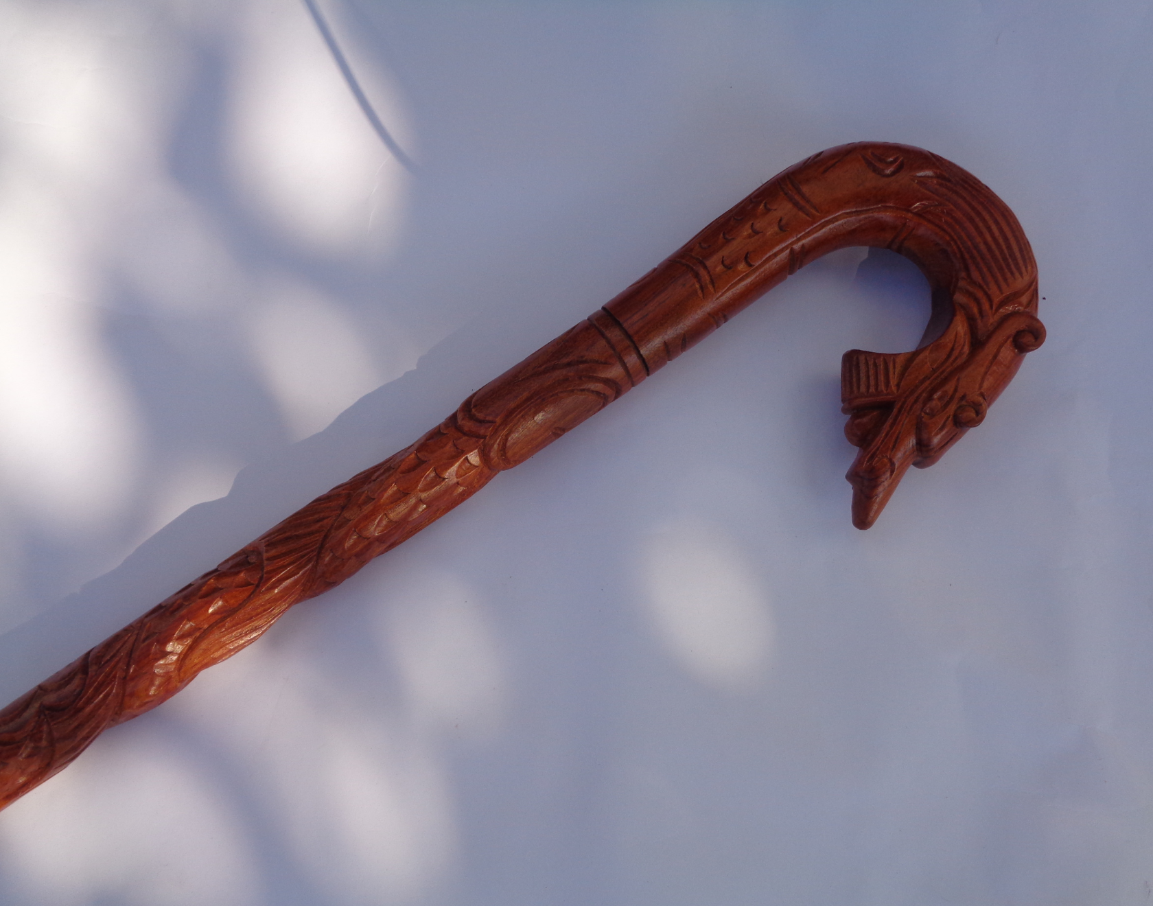 Gậy gỗ batoong chống cho người già -Đầu rồng thân trạm rồng- gỗ hương tự nhiên