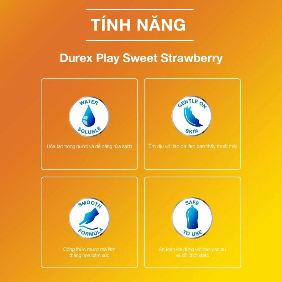 Mua tại TiktokGel Bôi Trơn Durex Play Strawberry giúp cuộc yêu trở nên mặn mà và nồng nhiệt hơn. Gel giúp bôi trơn, tăng độ ẩm cho âm đạo, mang lại cảm giác mịn màng, êm ái, thoải mái cho các nàng.