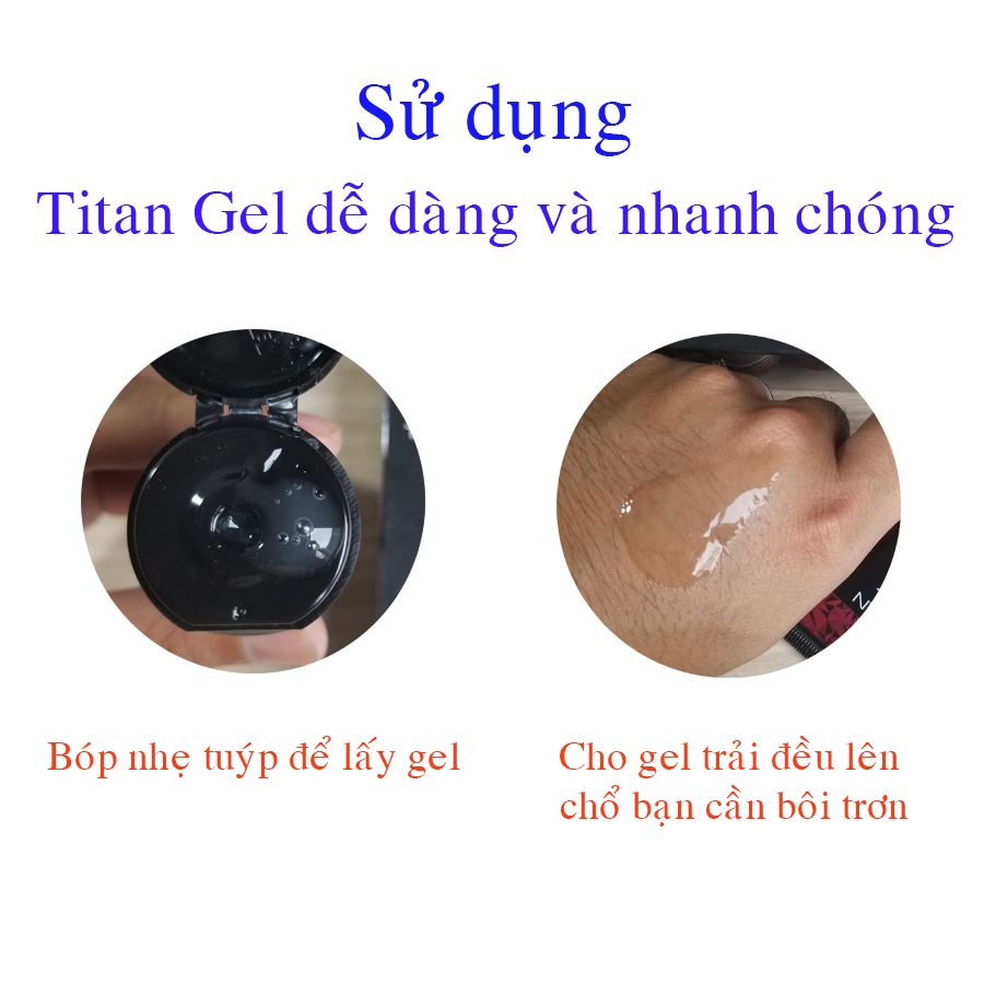 - Gel bôi trơn Titan có thể dùng với các loại bao cao su và khi đã mang bao vào có thể bôi gel lên bao cao su.