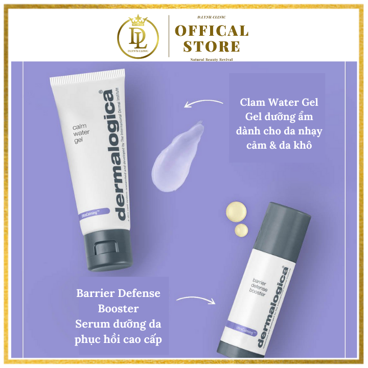 Gel dưỡng ẩm Dermalogica Calm Water Gel 50ml dành cho da nhạy cảm & da khô Gel-nước dưỡng ẩm da nhạy cảm Dermalogica Calm Water Gel là sản phẩm chuyên dùng cho làn da nhạy cảm có công thức từ gel được làm mới hơn là chuyển thành dạng dung dịch chất lỏng dễ thấm thấu vào sâu bên trong da hơn. Từ đó đưa lại tác dụng hiệu quả nhanh chóng làm dịu da cho làn da được mềm mại, mịn màng và còn tạo thành một lớp màng bảo vệ, chống lại các sự tấn công của môi trường. Bên cạnh đó với công nghệ axit hyaluronic kép hoạt động trong các lớp bề mặt da khác nhau giúp tăng cường và khóa độ ẩm. THÔNG TIN SẢN PHẨM