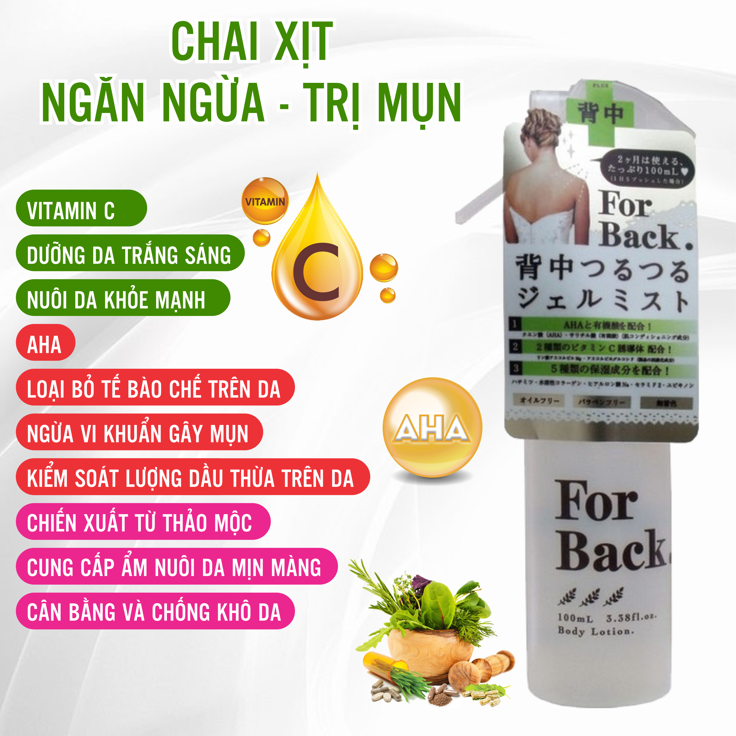 Sau khi tắm xong, lau sạch vùng lưng rồi xịt trực tiếp For back gel mist lên da ,vỗ nhẹ để dưỡng chất hấp thu tốt hơn. Có thể dùng cho các vùng da khác nhưng không dùng cho mặt.