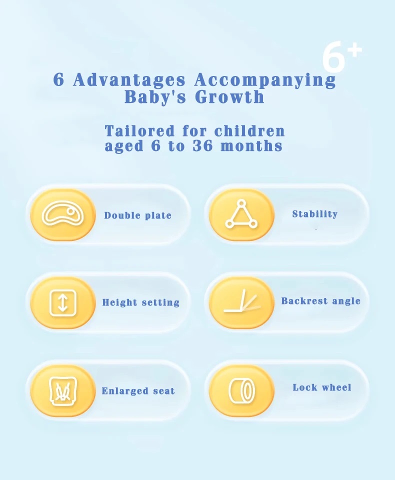 • Phù hợp cho bé từ 6 tháng đến 3 tuổi (tối đa 15 kg) • Thiết kế ổn định với khung kim loại vững chắc, chân ghế có đệm chống trượt •