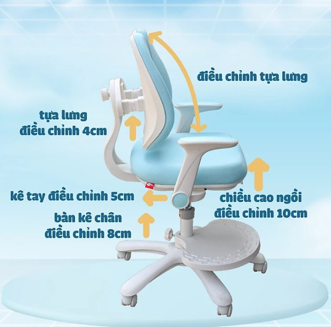 Ghế học sinh phù hợp với trẻ từ 3 đến 18 tuổi Sản phẩm có độ bền cao, độ chắc chắn và dẻo dai. Bé nhà bạn hoàn toàn có thể yên tâm ngồi thời