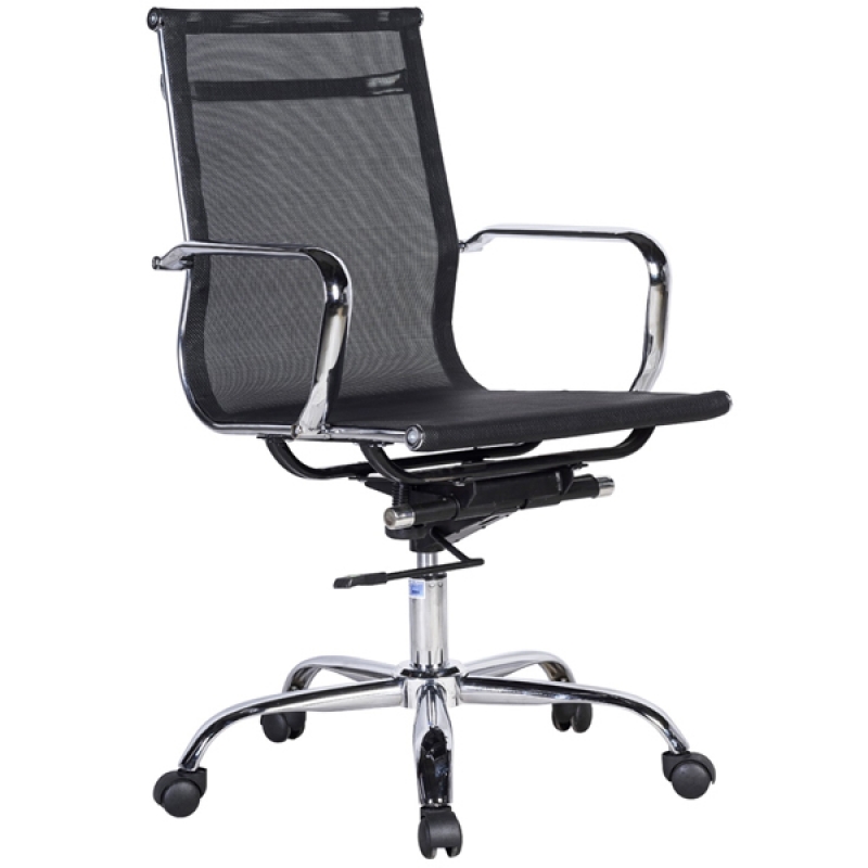 Ghế văn phòng lưng trung nhập khẩu CE4311-MP - Chất liệu: Lưng trung lưới, nệm PVC. Khung lưng thép mạ chrome Tay vòng thép mạ ốp PU. Chân thép mạ chrome cao cấp. - Kích