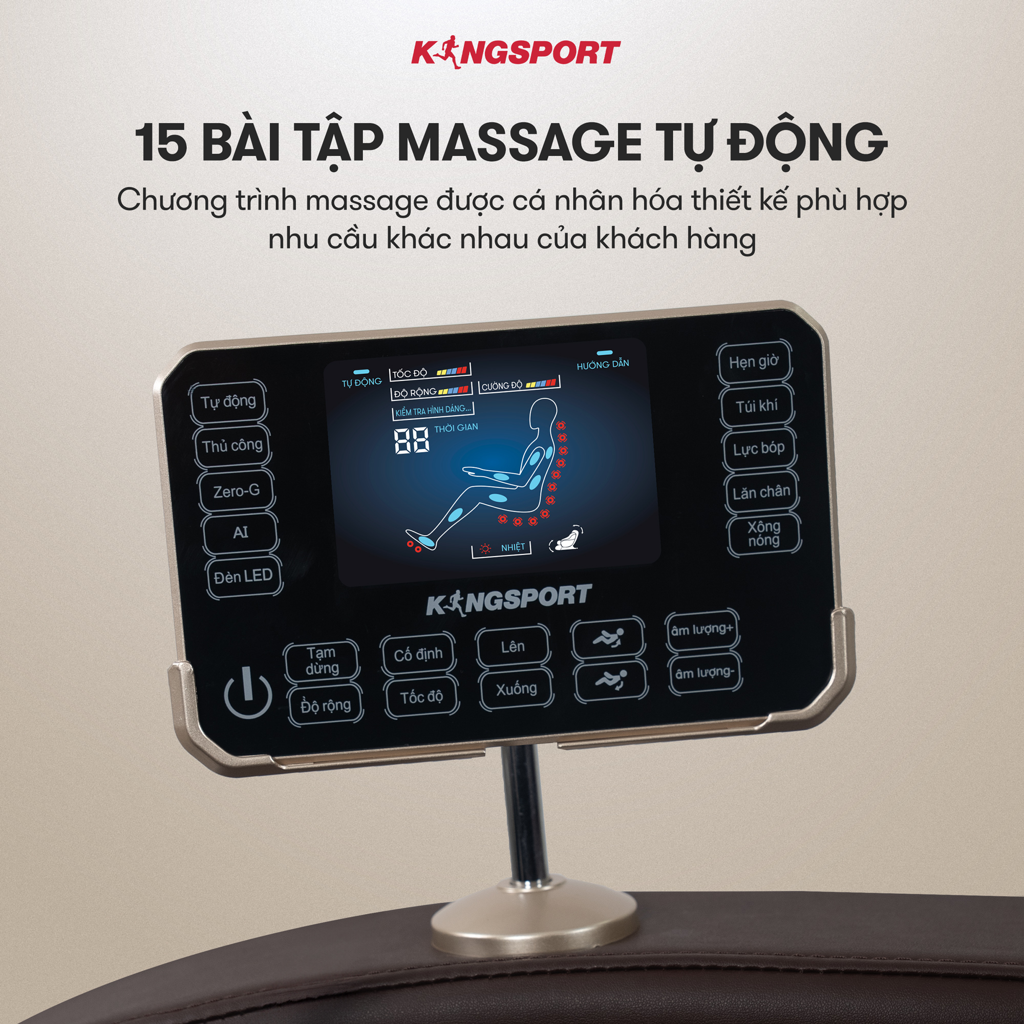Có thể nói, với hàng loạt chế độ massage thông minh và tác động toàn diện, chiếc ghế massage này sẽ giúp người dùng cải thiện sức khỏe cũng như chất lượng cuộc sống một cách toàn diện. Hãy liên hệ với KingSport ngay hôm nay để được tư vấn và đặt hàng nhanh nhất nhé.