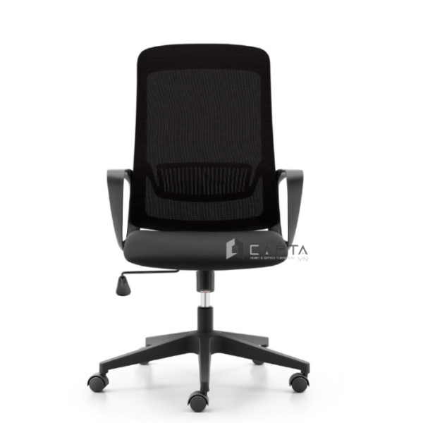✨Ghế nhân viên lưng trung CE4545-M Nội thất Capta Ghế văn phòng hiện đại lưng lưới nệm vải đen xoay nâng hạ gật gù chân xoay tại hcm