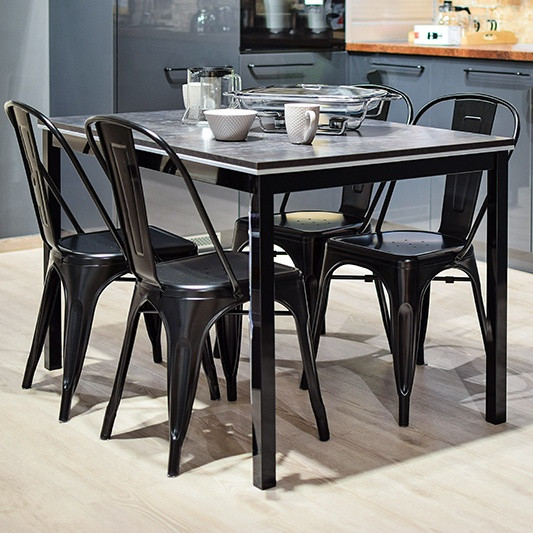 Khung thép sơn trắng hoặc Inox chắc chắn, bền đẹp theo thời gian. Ghế khung thép sơn trắng+ mặt bàn gỗ công nghiệp.Ghế khung inox + mặt bàn gỗ cao su không mối mọt ,