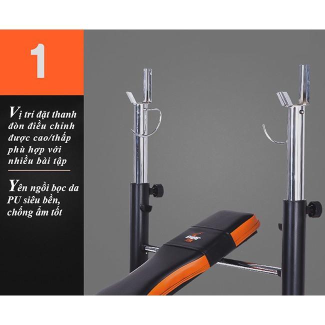 - Ghế tập tạ GM 4380 chuyên dụng để tập Gym và hỗ trợ các bài tập cơ bản gồm:
