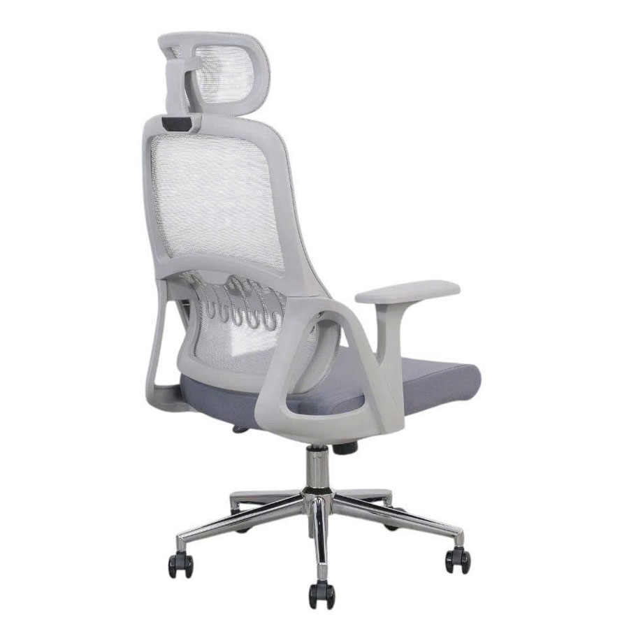 Thiết kế lưng lưới thoáng khí: Tựa lưng bằng vải lưới xám cao cấp, giúp thoáng mát, giảm nóng lưng khi ngồi lâu.