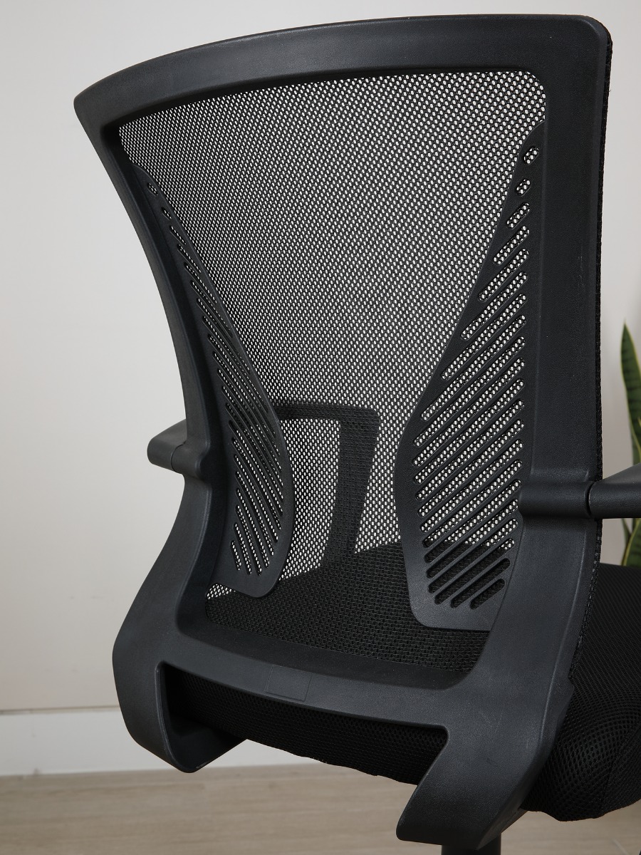 Ghế làm việc khung nhựa đen - Chất liệu: Lưng lưới, nệm vải lưới, khung nhựa và chân nhựa đen. Ghế xoay, nâng hạ, ngả nằm nghỉ trưa - Màu sắc: Đen - Ghế làm việc khung